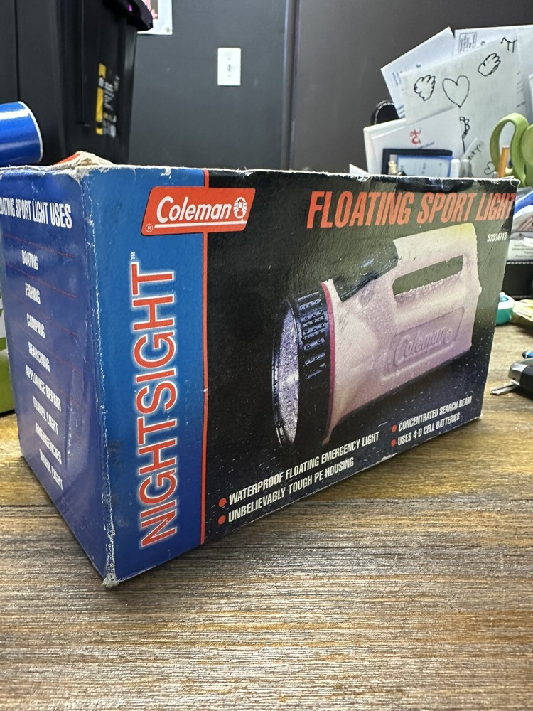 Model: Coleman 4D Floating Sportlight Power Source: Battery Brand: Coleman Features: Waterproof Type: Flashlight Material: Plastic