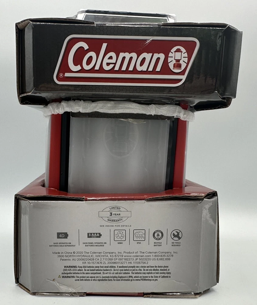 MPN: Does Not Apply Lightbulb Type: LED Lighting Technology: LED Features: Rechargeable Item Height: 7” Country/Region of Manufacture: China Model: Coleman Multi-Panel Type: Lantern Power Source: USB UPC: 0076501243420 Color: Multicolor Brand: Coleman gtin13: 0076501243420 Material: ABS