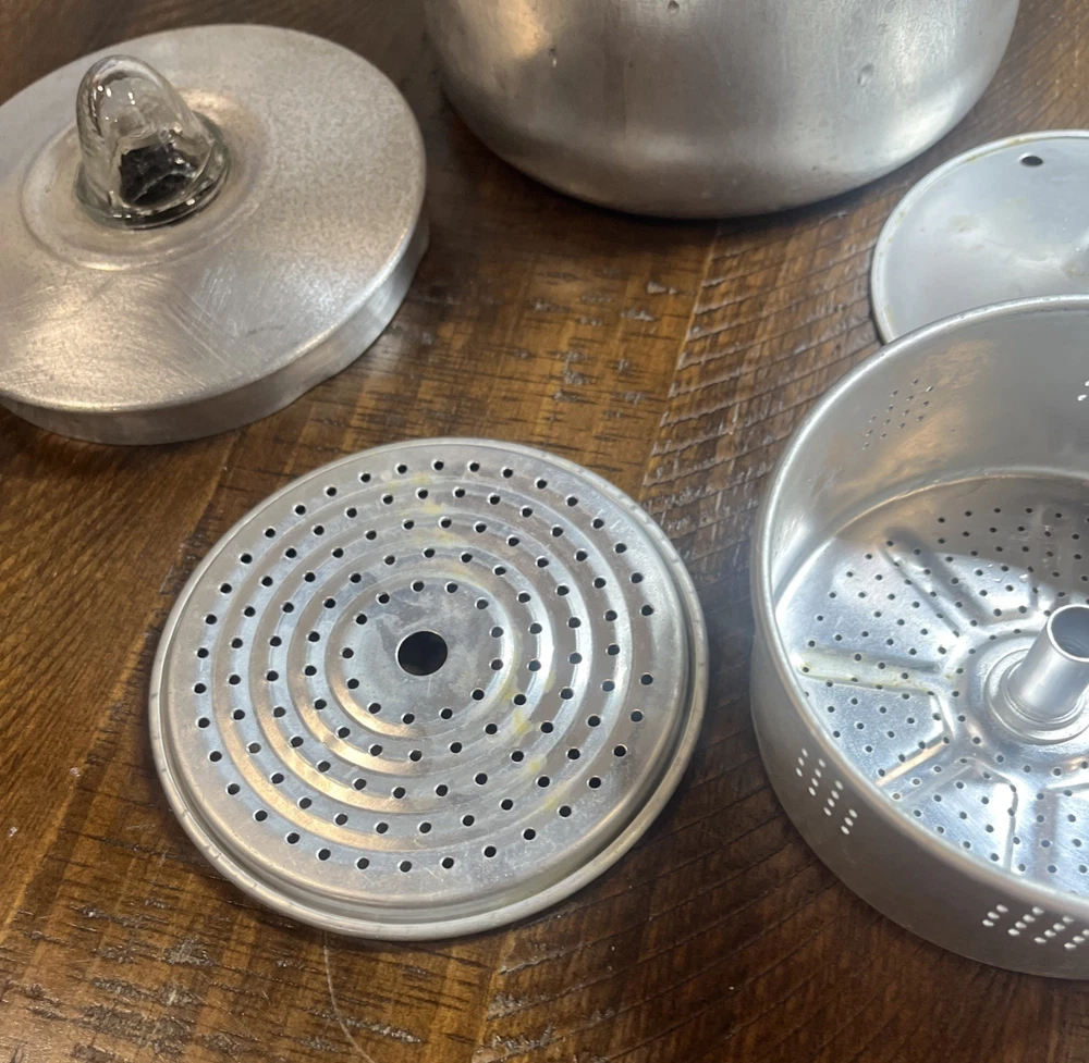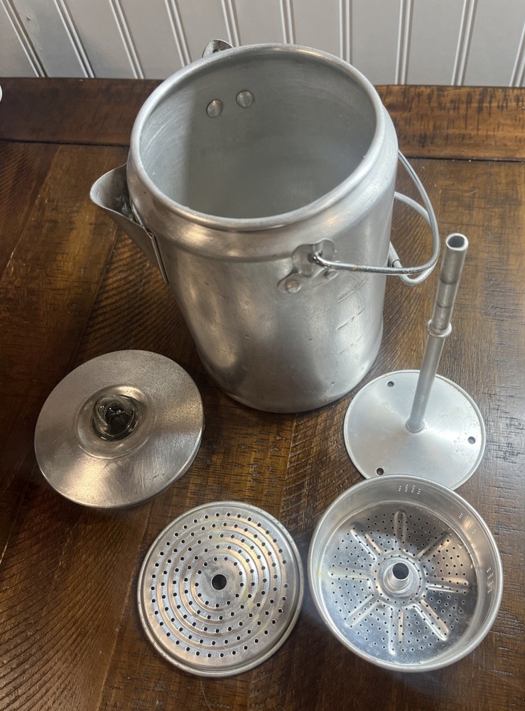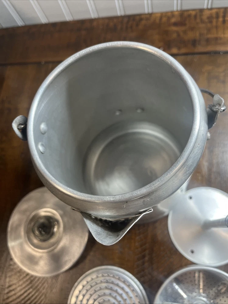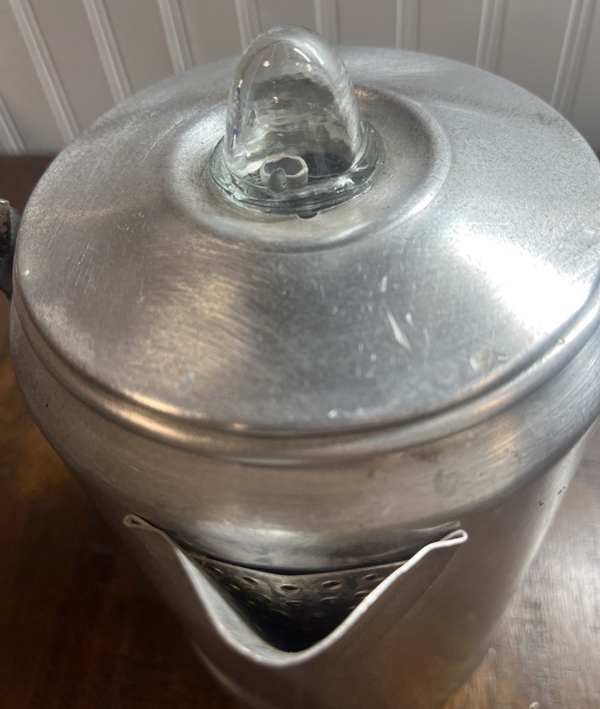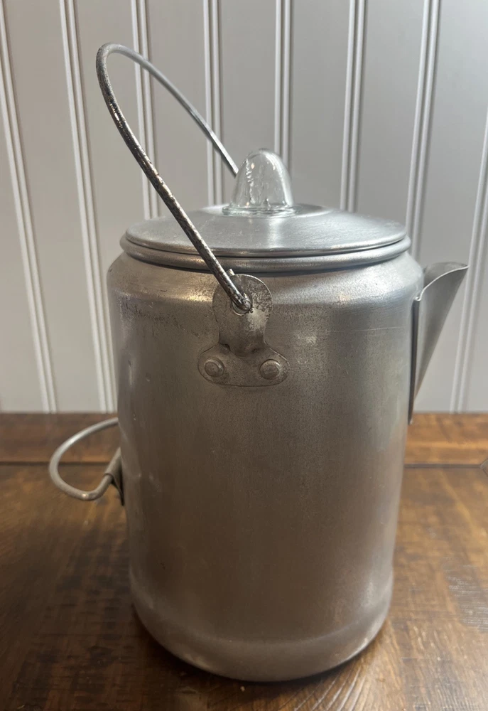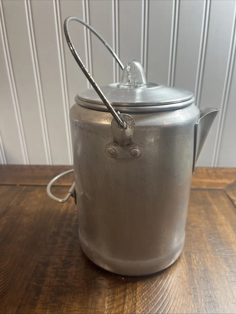 The Coleman Stove Top Camping Coffee Pot Percolator is a durable and convenient camping essential. Made of lightweight aluminum, this 9-cup pot is perfect for brewing coffee or making hot beverages while camping. With a height of 8 inches.