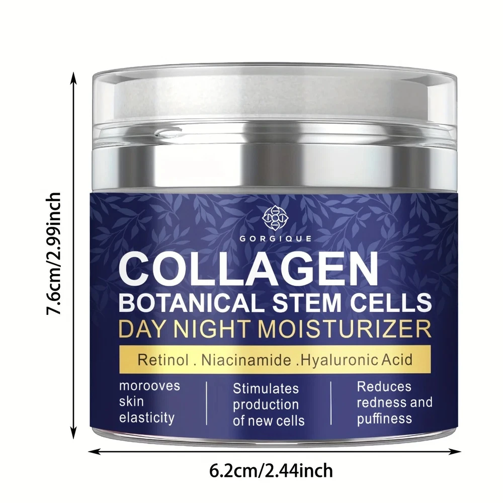 Revitalize Your Skin with Collagen Botanical Stem Cells Cream Achieve radiant, youthful-looking skin with our Collagen Botanical Stem Cells Cream. Packed with powerful ingredients like Retinol, Niacinamide, and Hyaluronic Acid, this advanced formula is designed to nourish, hydrate, and rejuvenate your skin. Key Benefits: Collagen Boosting: Our cream is enriched with Collagen, known for its ability to improve skin elasticity and firmness, reducing the appearance of fine lines and wrinkles. Botanical Stem Cells: Harnessing the power of plant-derived stem cells, this cream supports skin cell renewal and regeneration, promoting a smoother and more youthful complexion. Hydration and Nourishment: Infused with Hyaluronic Acid, it deeply hydrates the skin, while Niacinamide (Vitamin B3) helps to improve skin texture and tone, giving you a glowing and even skin tone. Why Choose Our Cream? Airless Pump Design: Ensures each application is fresh and hygienic, preserving the potency of the active ingredients. Suitable for All Skin Types: Whether you have dry, oily, or sensitive skin, our cream is gentle yet effective, providing comprehensive skincare benefits without irritation. Directions for Use: Apply a small amount to cleansed face and neck, morning and night, for best results. Massage gently until fully absorbed. Experience the Difference: Join countless others who have transformed their skincare routine with our Collagen Botanical Stem Cells Cream. Discover visibly smoother, firmer, and more radiant skin with every use. Invest in your skin’s future. Add our Collagen Botanical Stem Cells Cream to your cart today and unveil a revitalized complexion tomorrow!
