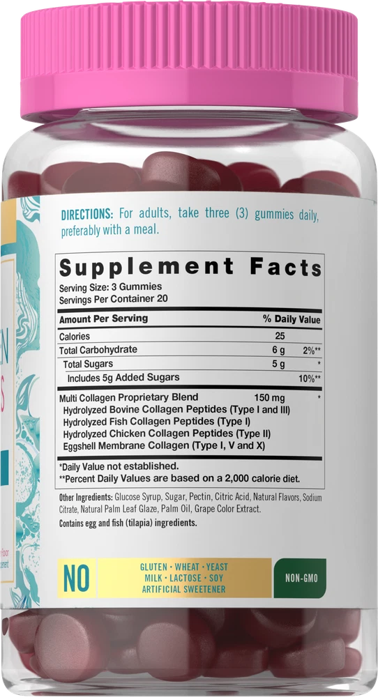 What is Collagen? Collagen is one of the most abundant proteins found within the body. It is located within connective tissue, bones, skin, muscles, and joints. As one of the main building blocks for hair, skin, and nails, Collagen has become popular for both men and women. Today you can find Collagen in topical products and in vitamins and supplements such as powders, liquids, tablets, pills, capsules, and now gummies. Supplementing with Collagen: Carlyle’s Multi Collagen Gummies provide 150 mg of a proprietary blend of Collagen per serving with Types I, II, III, V, and X in a delicious Mixed Berry Flavor. It's gluten-free and non-GMO, lab tested for quality, making it a trusted source of Collagen for everyone. Carlyle's Multi Collagen Gummies - Rooted in Wellness: Our expertise in sourcing the purest ingredients combined with advanced technologies makes us proud to deliver premium, honest supplements at the best value. Our Multi Collagen Gummies are a testament to our commitment to excellence, made with powerful ingredients rooted in wellness. Thanks for choosing us in your pursuit of living healthy!