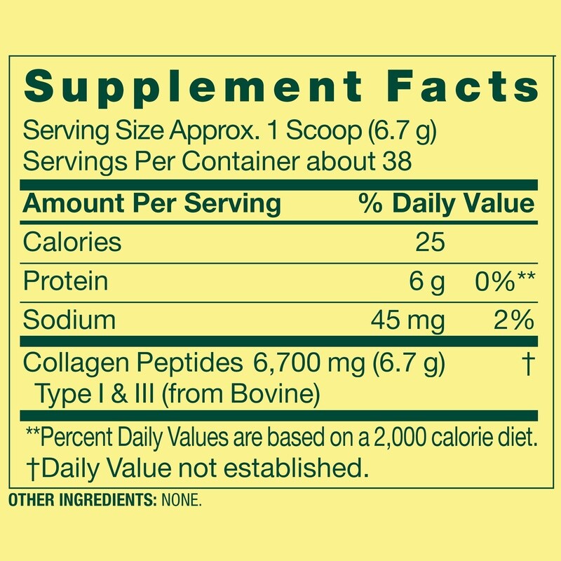 50000mAh Power Bank Portable Charger Fast Charge 6 Devices USB-C Built-in Cables 50.05 USD 52.68 USD Free shipping 5% off 12V Smart Trickle Battery Charger Maintainer Car Motorcycle ATV Lawn Mower New 29.39 USD 30.94 USD Free shipping 5% off 12V Battery Charger Kids Ride On Cars Power Supply ETL Listed Charging Cable New 19.11 USD 20.12 USD Free shipping 5% off 146Pcs 4th of July Party Favors Patriotic Accessories USA Celebration Supplies 29.43 USD 30.98 USD Free shipping 5% off 30 Pcs Patriotic Decorations Veterans Day 4th of July Party Indoor Outdoor New 19.12 USD 20.13 USD Free shipping 5% off 12Pcs American Flag Pinwheels Patriotic Decorations Independence Day Garden New 25.9 USD 27.26 USD Free shipping 5% off Disposable Patriotic Tablecloths 3 Pack Birthday Memorial Outdoor Party Supplies 12.64 USD 13.31 USD Free shipping 5% off Patriotic Eagle Wreath Garden Flag Double Sided Outdoor 4th July Decor New 13.23 USD 13.93 USD Free shipping 5% off Patriotic Wood Block Sign Set Independence Day Table Decor Farmhouse Centerpiece 19.1 USD 20.1 USD Free shipping 5% off 6 Pack Patriotic Star Streamers Garland Hanging Decorations 4th of July Party US 14.34 USD 15.1 USD Free shipping 5% off 4th of July Pillow Covers Set of 2 Soft Plush Fur Independence Day Home Décor US 19.12 USD 20.13 USD Free shipping 5% off 29PCS 4th of July Decorations Set Paper Fans Pom Poms Banners Swirls Stars New 23.54 USD 24.78 USD Free shipping 5% off Collagen Peptides Type 1 and 3 Dietary Supplement is your go-to solution for healthy hair, skin, nails, and joints. * This powerful powder stirs and mixes seamlessly into six to eight ounces of water or your favorite juice for easy consumption, and its collagen-packed formula provides the building blocks to help support your health and vitality. Take this unflavored powder with you for an on-the-go boost or a pre- or post-workout drink. You can even opt to whirl it into your favorite smoothie for a special treat. Supplement your healthy lifestyle with the Collagen Peptides Type 1 and 3 Dietary Supplement. * understands living a healthy, balanced lifestyle is the key to being your best self. With an affordable range of products inspired by nature, supports your and your family's health and holistic wellbeing. Collagen Peptides Type 1 & 3 Dietary Supplement, 9 oz Go-to solution for healthy hair, skin, nails, and joints* No gluten, yeast, wheat, milk, lactose, sugar, soy, or preservatives No artificial color or flavor Stirs and mixes easily 9 oz tub contains about 38 servings Keto and paleo formula *These statements have not been evaluated by the Food and Drug Administration. This product is not intended to diagnose, treat, cure, or prevent any disease You may also like Garcinia Cambogia 800mg Veg Capsules Weight Management 90 Count 2 Pack New 23.21 USD 24.43 USD Free shipping 5% off Stainless Steel Rotating Skewer 27in Camping BBQ Fire Pit Marshmallows Hot Dogs 25.0 USD 26.32 USD Free shipping 5% off Extra Strength Vitamin C Gummies 500 mg Immune Support Vegetarian 120 Count New 14.54 USD 15.31 USD Free shipping 5% off 4-Pack Angled Wine Glass Set Smoke Finish Elegant Design Durable Glassware New 26.27 USD 27.65 USD Free shipping 5% off Dehydrated Cross-Cut Celery 18oz Shelf Stable Emergency Food Gluten Free New 25.17 USD 26.49 USD Free shipping 5% off Oversized Striped Beach Towel Cotton Recycled Polyester Outdoor Activities New 17.49 USD 18.41 USD Free shipping 5% off Dust Trapping Microfiber Duster Refills Cleaning Lavender Scent 10 Count New 14.64 USD 15.41 USD Free shipping 5% off Folding Camp Chair Portable Sling Back Padded Seat Steel Frame Mesh Bag New 29.63 USD 31.19 USD Free shipping 5% off Soft-Sided Pop Up Mesh Dog Kennel Portable Crate Easy Travel Storage Folding New 25.03 USD 26.35 USD Free shipping 5% off Vitamin D3 Gummies Immune Bone Health 160 Count Assorted Fruit Gluten Free New 13.07 USD 13.76 USD Free shipping 5% off 2-Pack Beach Towels Cotton Blend Striped Soft Absorbent Lightweight Outdoor Use 20.56 USD 21.64 USD Free shipping 5% off Gray Round Resin Planter W/ Drainage Holes UV Resistant Lightweight Eco Friendly 23.53 USD 24.77 USD Free shipping 5% off