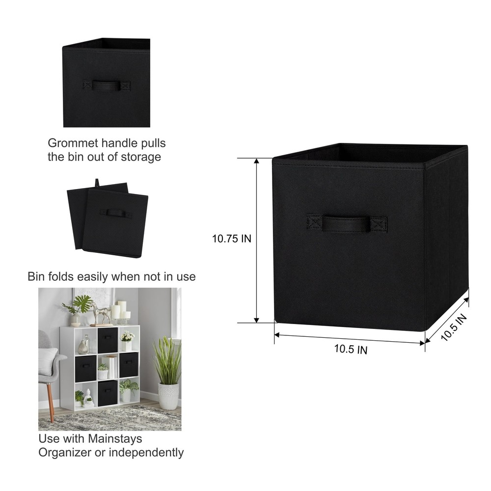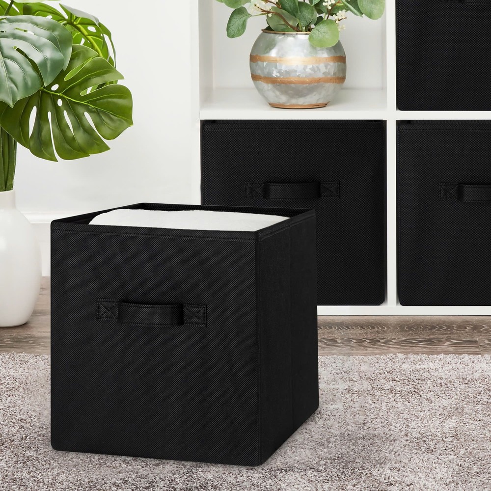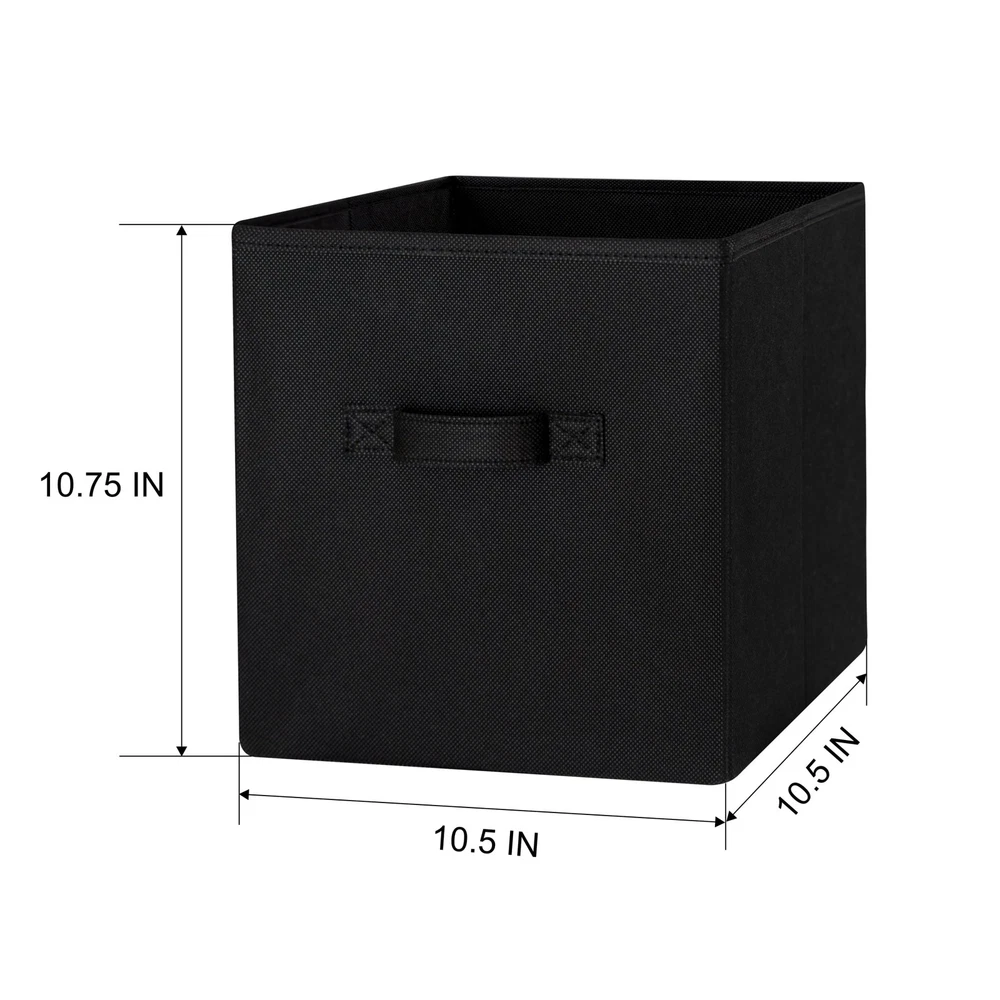 Our Foldable Fabric Storage Box is the answer to your need for an organized home. Measuring 10.5" x 10.5" x 10.75", this box is perfect for everything from children's to adult clothing, books, and more, with plenty of space to neatly organize your belongings, and sturdy handles that make it easy to lift them off the shelf. You can bring the storage box's organization to your living room, bedroom, laundry room, or dorm room. When not in use, you can easily fold the box flat and store it in your closet for later use. This fabric box pairs well with our Storage Box Organizers and is made from durable fabric that's built to last. With a variety of colors to choose from, you can perfectly match your home decor when organizing your belongings with our Foldable Fabric Storage Box. Help you create an organized and comfortable home Includes 6 black cube organizers Perfectly match your favorite colors and patterns Convenient handles on the sides of the organizers for easy carrying Can be used with our cube organizers or alone Cubes can be folded when not in use to maximize space saving Ideal for storing books, children's and adult clothing in the bedroom, living room, laundry room or dorm Made of durable fabric that is wrinkle-resistant, wear-resistant and retains its shape Dimensions: 10.5"L x 10.5"W x 10.75"H (26.5cm x 26.5cm x 27.3cm)