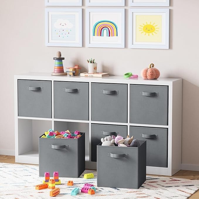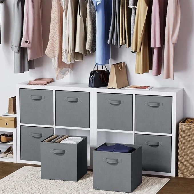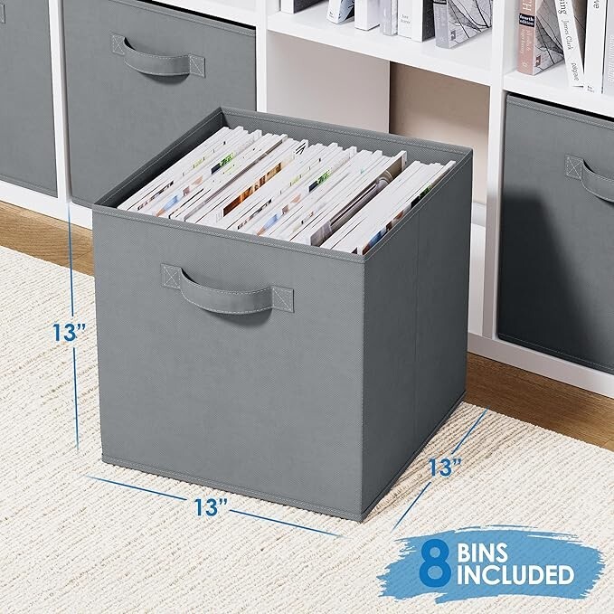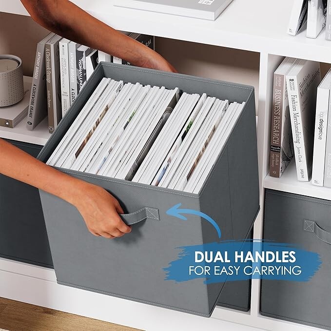 Fabric Storage Bins SUPERIOR STURDY DESIGN: The Neaterize sturdy storage cubes will exceed your expectations for quality, durability, and style. Reinforced handles on both sides enable quick and easy carrying. DIMENSIONS: 13(W) x 13(D) x 13(H) inches (33 x 33 x 33 cm) MULTI-PURPOSE ORGANIZERS: Achieve organizational bliss with these chic, functional fabric drawers! Designed to perfectly fit most cube organizers. Use in your linen closet, wardrobe, nursery, playroom, laundry room, office and much more. COLLAPSIBLE DESIGN: These versatile baskets are super easy to fold and store compactly when not in use. When you need 'em, they'll pop up in a flash, ready to store a variety of belongings such as underwear, socks, toys, crafts, cleaning supplies and what not. ENVIRONMENTALLY FRIENDLY: Just like you, we care deeply about our environment and it's protection. Our storage bins are made with eco-friendly materials that is sturdy yet breathable - easy on your hands, your belongings and the environment.
