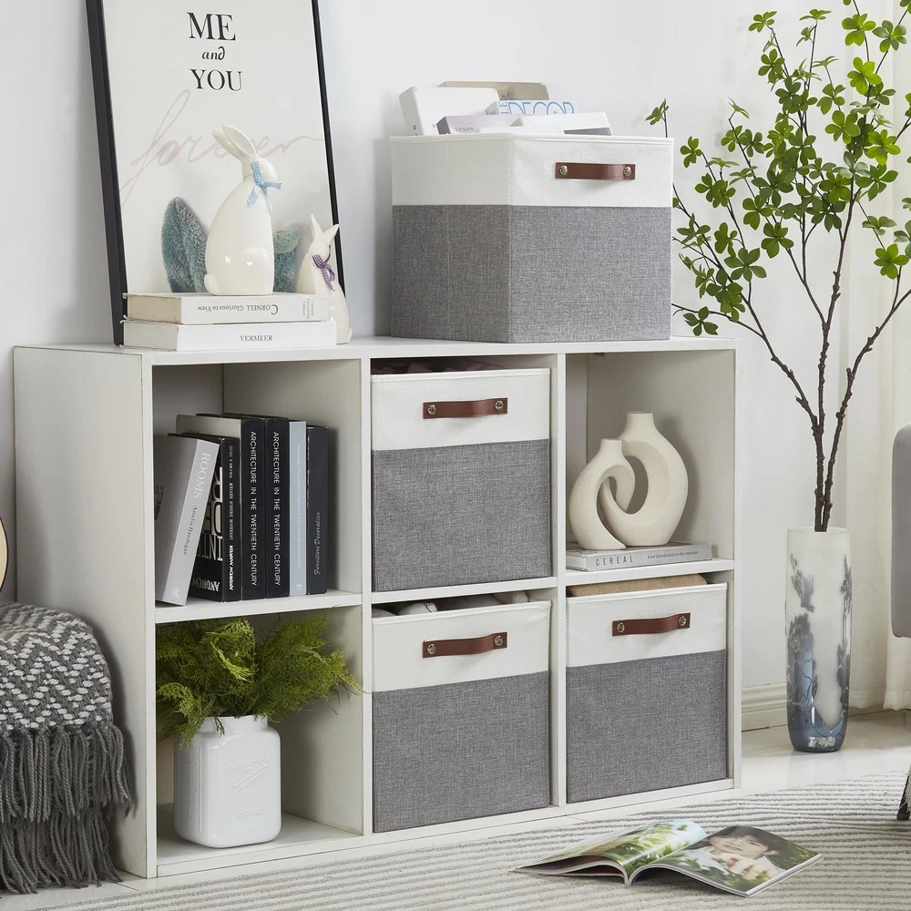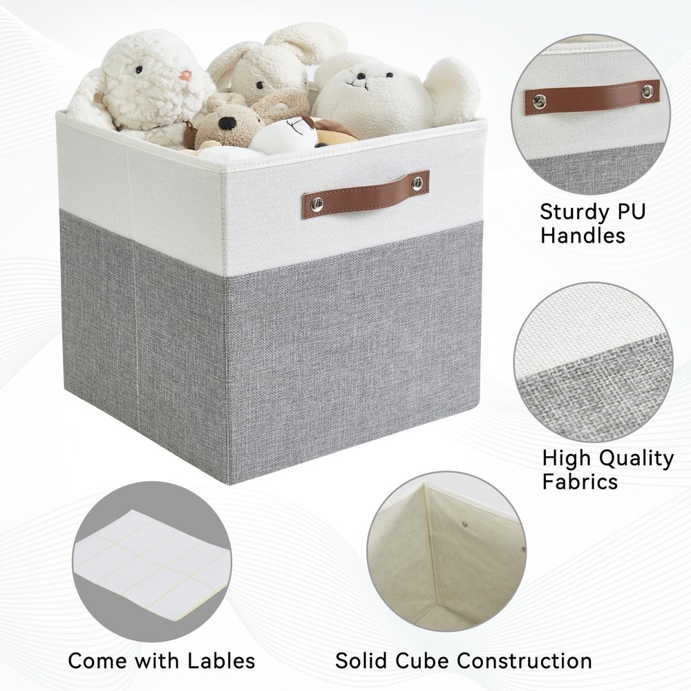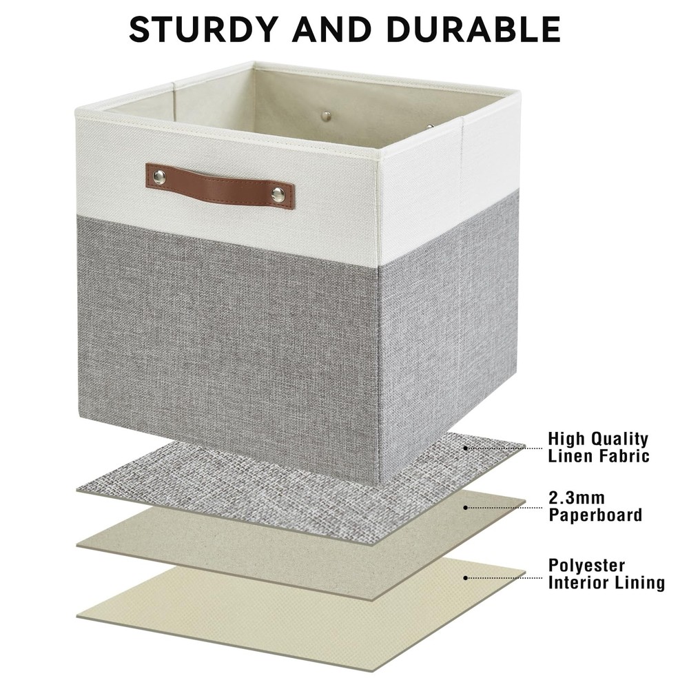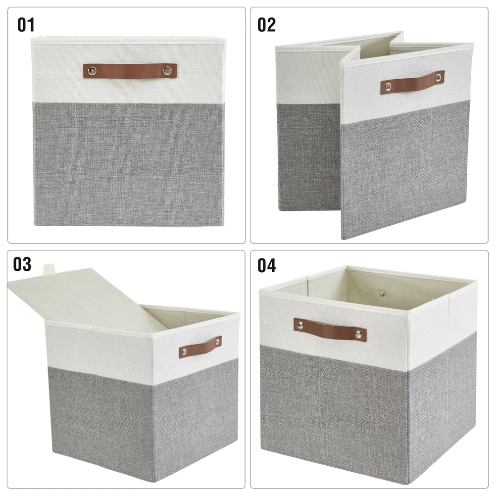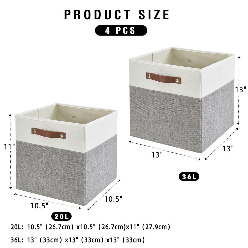 All home foldable fabric storage boxes are made of unique style, fine details, and craftsmanship. Store your items in elegant style with this storage bins with lids, which are perfect for your shelf, closet, under bed, living room, office even in the hallway. Keeping your off season items, pet products, toiletry storage, accessories or even shoes in a neat and orderly fashion. Brand:. Size: 13x13x13"/11x11x11", 4-Pack Color: Full Gray, Full Beige, Full Pink, Sage Green, Gray & White, Beige & White, Black & Gray Material: Natural Linen Fabric, High Quality Non-Woven Fabric Lining and Sturdy 2.5 mm Paper Board. This grey cloth storage bins with lids are made of durable and breathable linen fabric with the high quality cardboard on the sides and bottom. When the storage baskets are not in use they can be folded flat to store away. These storage boxes elevate your home organization with these versatile small basket sets. Ideal for moms looking to declutter and streamline various household areas, from pantry shelves to children's toys. Say goodbye to chaos and hello to a beautifully organized home with these stylish and functional baskets. 【Universal Size & Multi-Room Organization】The standardized size of 13"x13"x13" seamlessly integrates with over 90% of cube organizer, from bedrooms to game rooms to laundry rooms, making it an ideal choice for storing books, toys, clothes, etc. 【High Quality】These fabric storage bins are made of sturdy linen fabric & soft and non-woven fabric lining. The sides and bottom are supported by 2.5 mm paper board. They are hard to bend or fall down, which could create a neat environment for you. 【Practical & Convenient】The handles are made of leather on both sides, which use rivets to strengthen, hard to fall off. These strong and durable handles allowing you to effortlessly organize and access your belongings. 【Foldable & Space Saving】Collapsible design makes the assemble of the storage box simply and conveniently, just push the base board. When not in use, these bins can be easily folded and stored away. 【Trusted Quality】All home collapsible storage boxes are made of unique style, fine details, and craftsmanship. This collapsible storage bins are great for Birthday days, Mother's Day, Father's Day,Thanksgiving and Christmas.