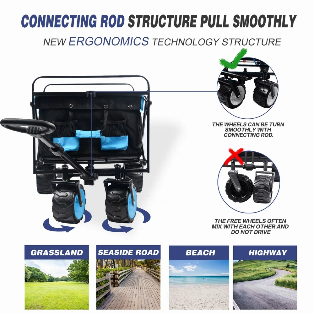 Beach Garden Travel Folding wagon cart Feature: Folding carts with strong steel structure-upgrade 600D waterproof oxford fabric, 2 cup holders design, equipped with 7’’all terrain tires. 180-degree rotating off-road wheel and the rear wheels are directional wheels. This is adopted to make your parking, pushing and pulling more conveniently. it doesn’t need to be installed, easy to open and fold, occupy small space, suitable for outdoor activities such as shopping, beach, camping. Sets up in seconds, no assembly required! Outside Dimensions Approx: 39.4" x 23.2" x 31.5". All terrain collapsible outdoor wagon cart has 90L large-capacity internal storage.And the use of 600D Oxford cloth, do not need to worry about filling too many things to cause damage. Wagon folds to only 7.48" thick! Folded size approx 29.5 x 22.3 x 7.5’’and includes a convenient portable bag for carry. All terrain collapsible folding outdoor wagon cart has internal pull rope design. Rear braking The cart can stop when you hit the brake with foot. Not only convenient but also protect your family and pets. Just up the brake then driving again. Double Triangle Structure Heavy-quality Frame, is made of triangle structure. Sets up in 3 seconds, No assembly required!The heavy duty frame allows loads up to 350 lbs. Widen Deepen Silent Wheels 7’’all terrain tires. The Wheels are silent widen hub and wear-resistant. It is made of PU material. 180° Connecting Rod Pull Smoothly Stand Alone and Save Hands 600D Oxford Waterproof Fabric Specification: Fabric Material: Oxford Frame Material: Steel Overall dimensions: 39.4" x 23.2" x 31.5"(L*W*H) Folded dimensions: 29.5 x 22.3 x 7.5’’ (L*W*H) Capacity: 90 L Max Load: 350 LBS Weight: 30 LBS Package: 1 x Collapsible Wagon Cart