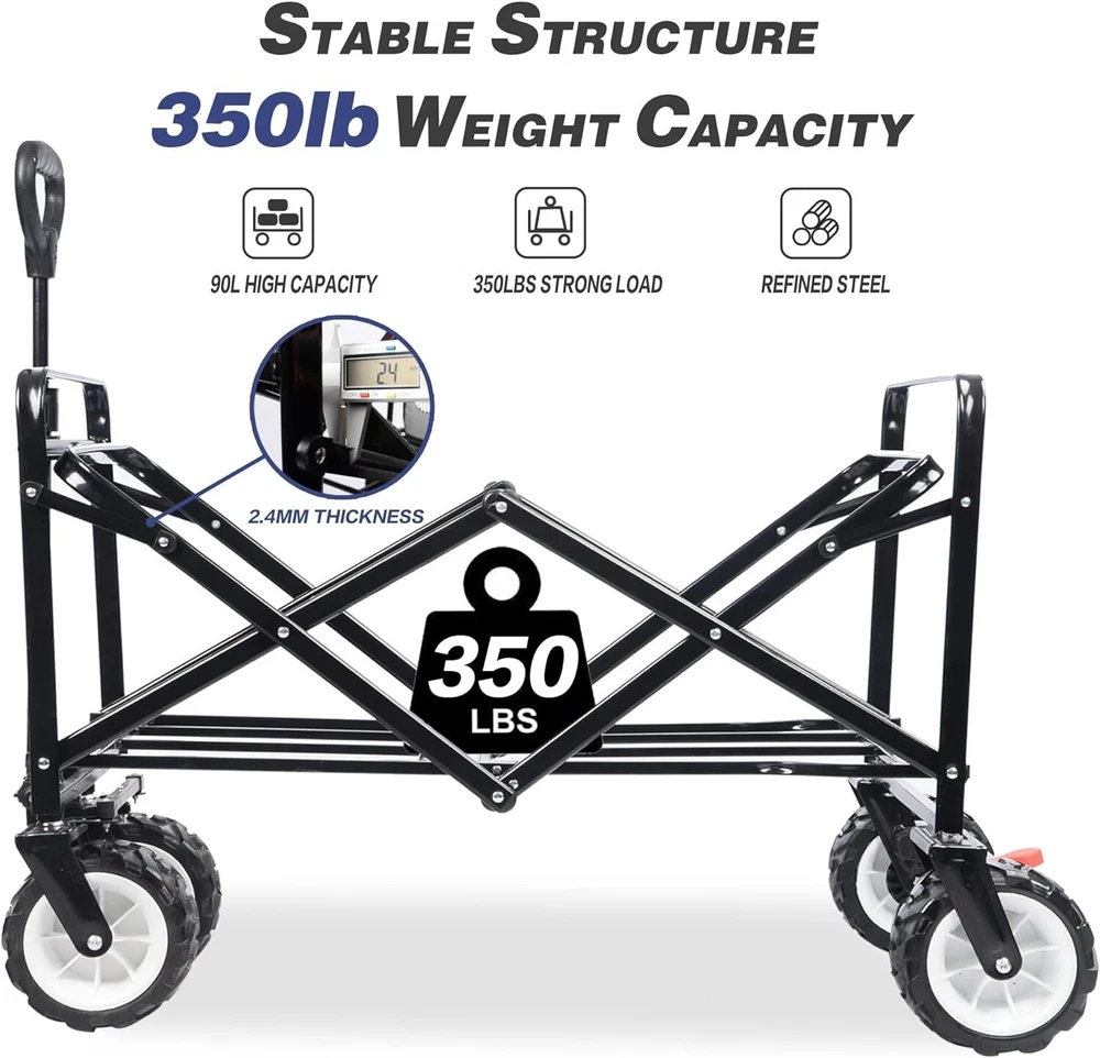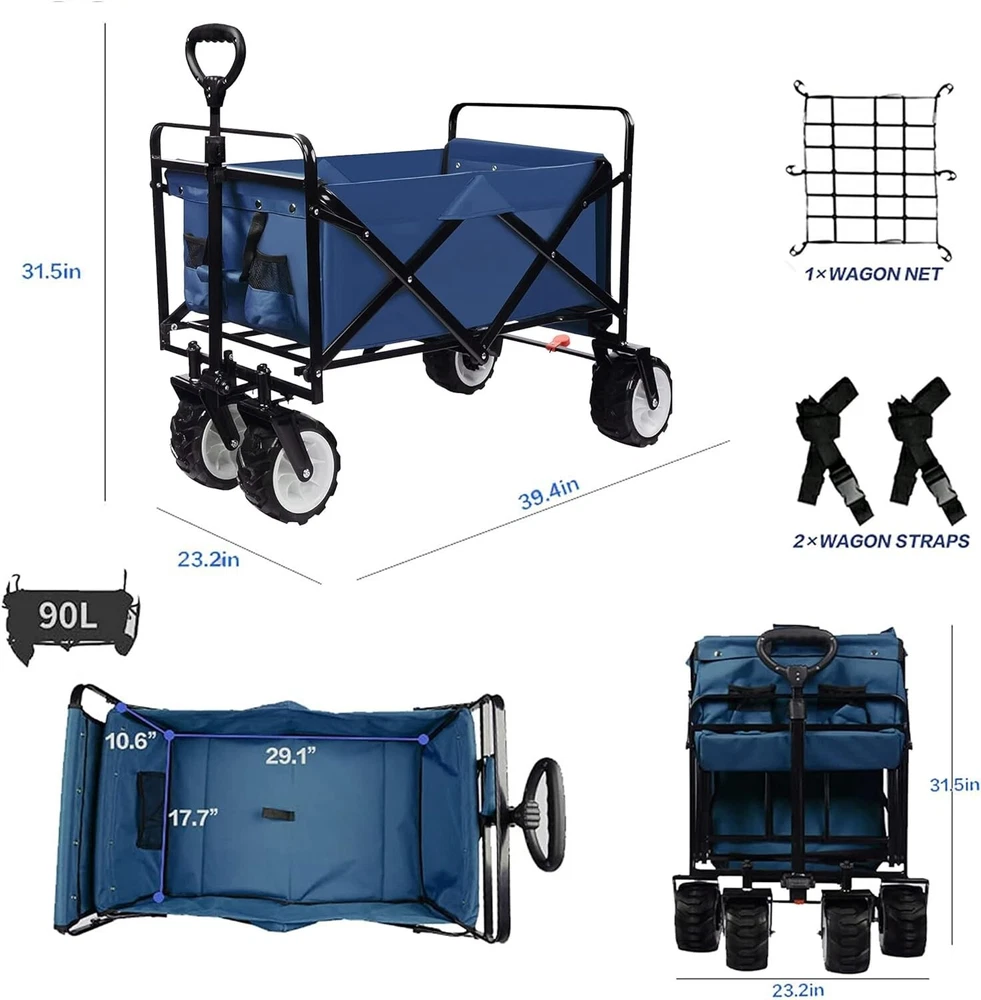 Product Description The high-quality brakes are easy to use, and the cart can stop on the slope after stepping on it. It can also pull pets and children, which increases the safety of use. The ergonomic handle makes pulling the cart easier without hurting your fingers, the handle won't fall to the ground when you let go. The handle is easy to adjust, you can easily adjust the length with your own use, and it will not be uncomfortable to use. Our wagon features 2 mesh cup holders on the front, allowing you to store bottles securely and access beverages easily. Durable and made of 600D Oxford cloth and PE cotton, so it is reliable but won't wear down with use. It can be easily opened and folded in seconds. Folds up for easy storage. Small enough to fit in a closet, on the wall, or in the trunk of any standard car.