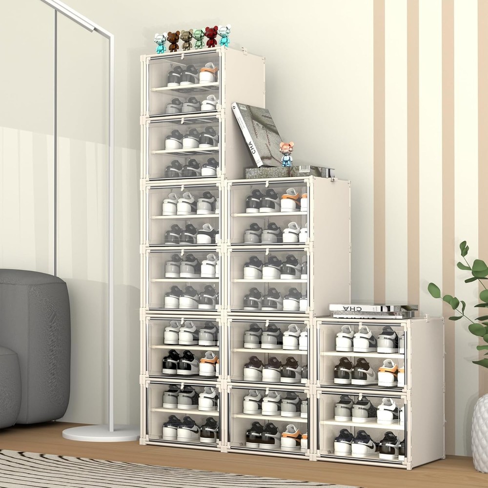 Product Description About this item • Sturdy Metal Frame and Extra Top Panel: Built with a robust steel frame, this heavy duty shoe box can withstand heavier loads, ensuring durability and reliability. To further improve its load-bearing capacity, we give it an extra top panel. This panel not only boosts stability but also provides a smooth surface for added functionality. Now, we can confidently place heavier items on top without worrying about sagging or instability • Foldable and Easy to Assemble: The foldable structure allows for quick and hassle-free assembly, so you can have the shoe box ready in minutes without any complex instructions or extra tools • Extra Large Space for Maximum Storage: Each tier of this shoe organizer holds up to two pairs of shoes, optimizing storage without taking up extra room • Stackable Design for Shoe Walls and Beyond: With its stackable design, we can combine the shoe rack organizers to create a stylish and functional shoe wall. In this way, the shoe storage organizer easily adapts to our needs for shoe storage and sneaker displays • Suitable For A Variety Of Scenarios: We can use this shoe storage box in different household scenes such as front door entrance, bedrooms, dorms, closets, and garages On Aug 11, 2025 at 20:10:32 PDT, seller added the following information: