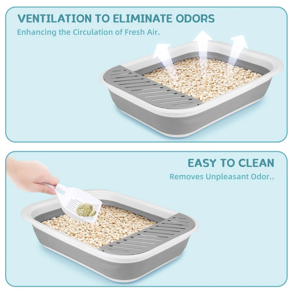 This collapsible litter box is a game-changer for pet owners on the go! The durable PP and silicone material is sturdy yet lightweight, making it perfect for travel, camping, or even as a multi-use tray at home. It folds flat for easy storage but stays rigid when in use—no leaks or spills. My cat took to it immediately, and I love how easy it is to clean. The included scoop is a nice bonus. Highly recommend for anyone who needs a portable, space-saving solution that doesn’t skimp on quality!