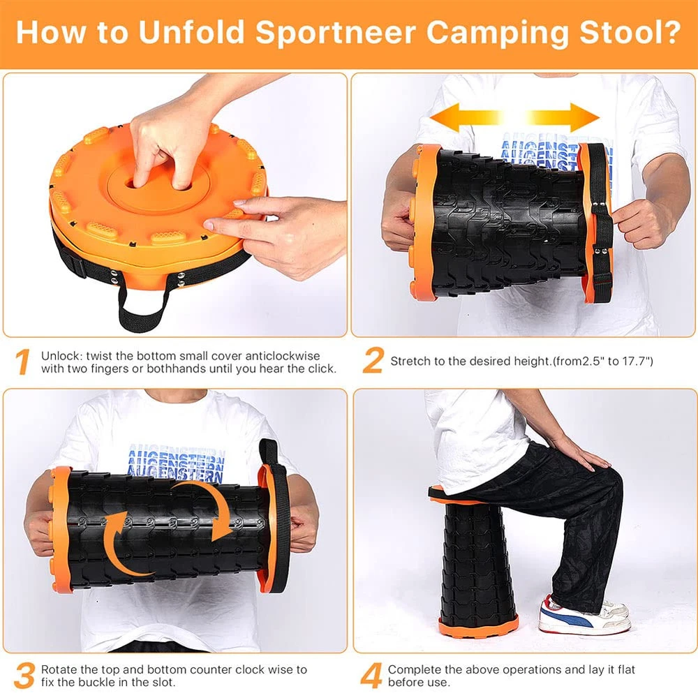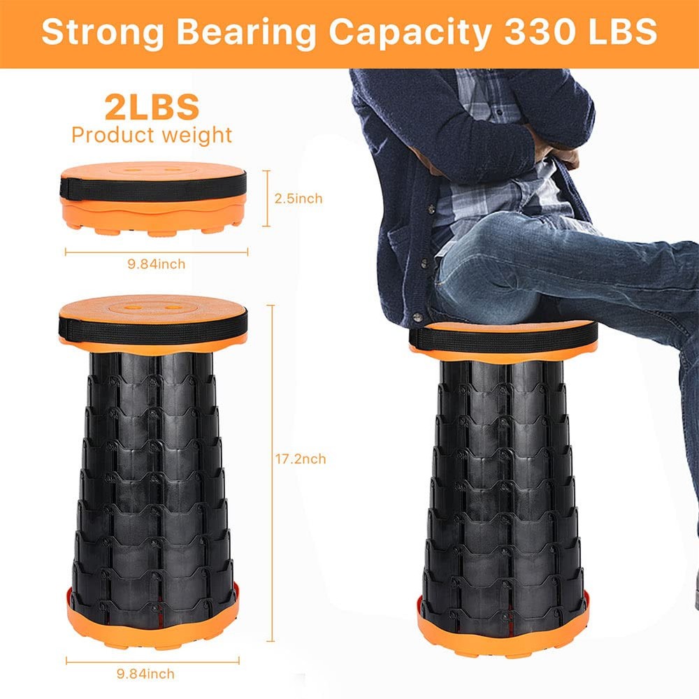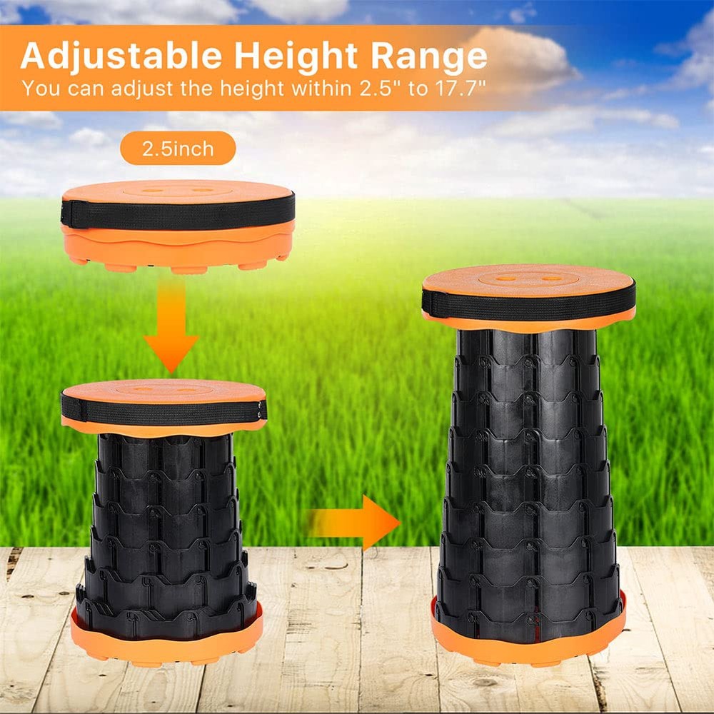 PORTABLE STOOl - Life is constantly on the move, and our retractable folding stool can move with you. It is collapsible to take less storage space. magic stool is 2.54 pounds only with. For long distance travel, you can easily put lightweight portable stool into your luggage or backpack. Isn't perfect for hiking, backpacking, camping, fishing, or hunting? ADJUSTABLE HEIGHT STOOL- Discovering the outdoors is full of fun and adventure, but sometimes you just want to take a seat. The adjustable stool chair is ranging from 2.5 to 17.72 inches. The basic premise is to make the stool fit the person, rather than making the person adjust to the stool. You can enjoy every nature's scenery while relaxing with our Magic Stool! FIRM and STABLE -The side support is reinforced, the anti-slip bottom design adds to its safety, the load capacity reaches 400 lbs,portable stool for adults heavy duty. Pull&Twist, you get your customized height collapsible stool, Push&Twist, you get your compact easy storable disk, it only takes a few seconds.That's magic!!! MULTIPURPOSE - Created to make everyday life easier, our magic stool is an ergonomic portable retractable folding chair or footrest that you can use anytime and take anywhere! Good for garage or garden and can be easily used as a hunting chair or part of backpacking gear. Suitable for kids and adults. SAFETY we guarantee product safety standard, protecting you away from the hazardous substances. Our Magic Telescoping Stool is an excellent gift. Click 'Add to Cart' now and make it the perfect home or travel essential!