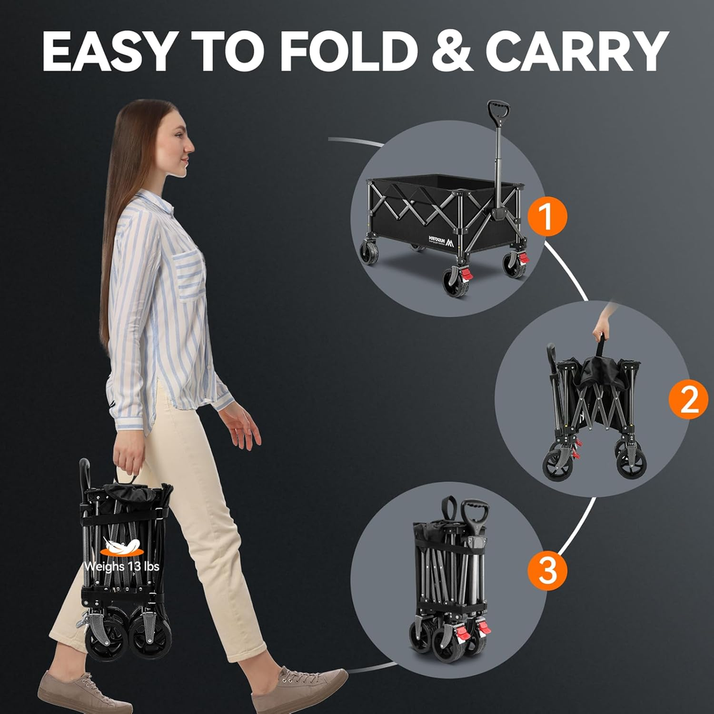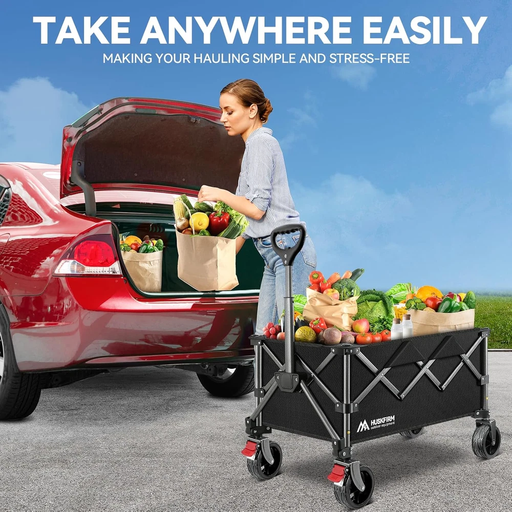 This collapsible wagon has been a total game-changer for all my outdoor adventures and grocery runs! It's surprisingly sturdy yet lightweight, folding down compactly for easy storage. The smooth-rolling wheels handle any terrain effortlessly, making hauling heavy loads an absolute breeze.