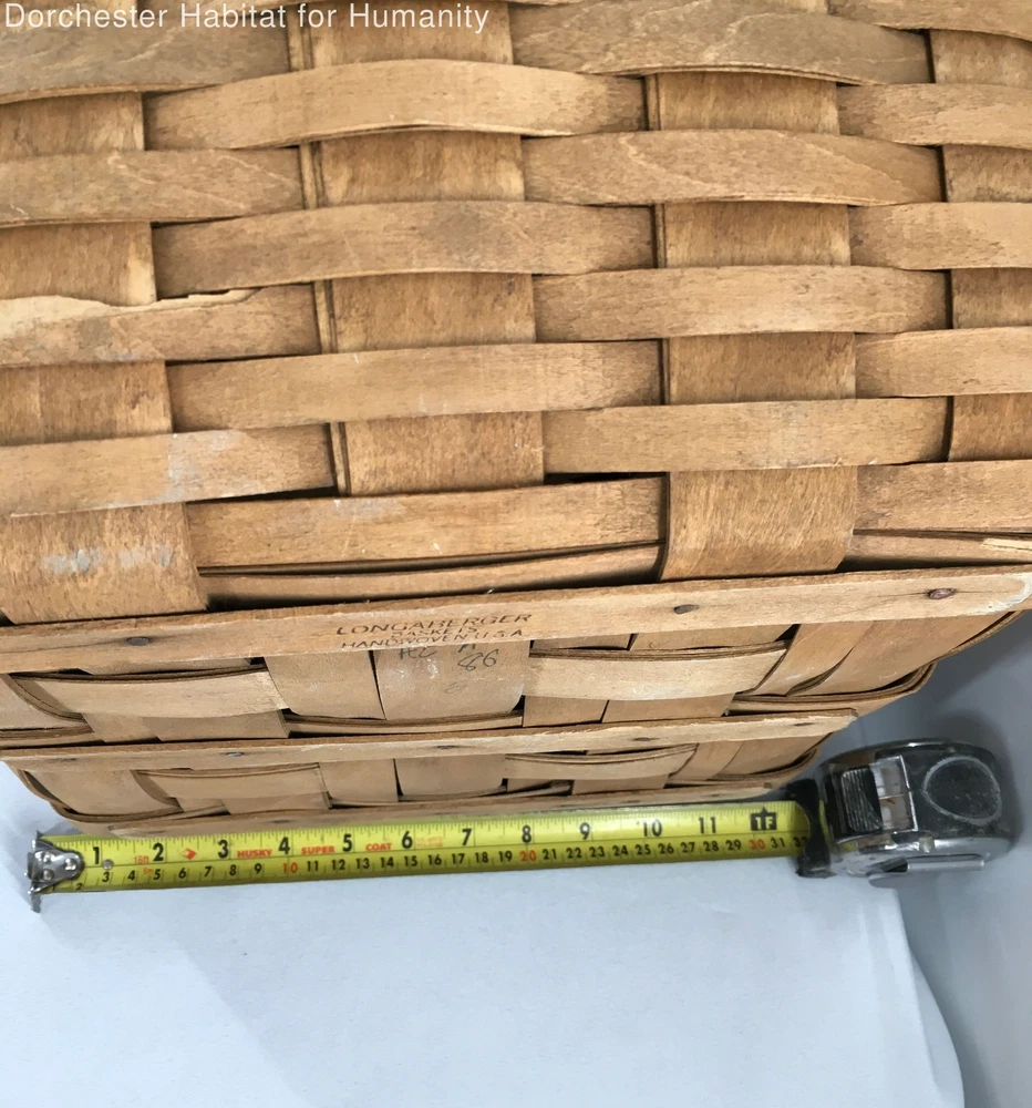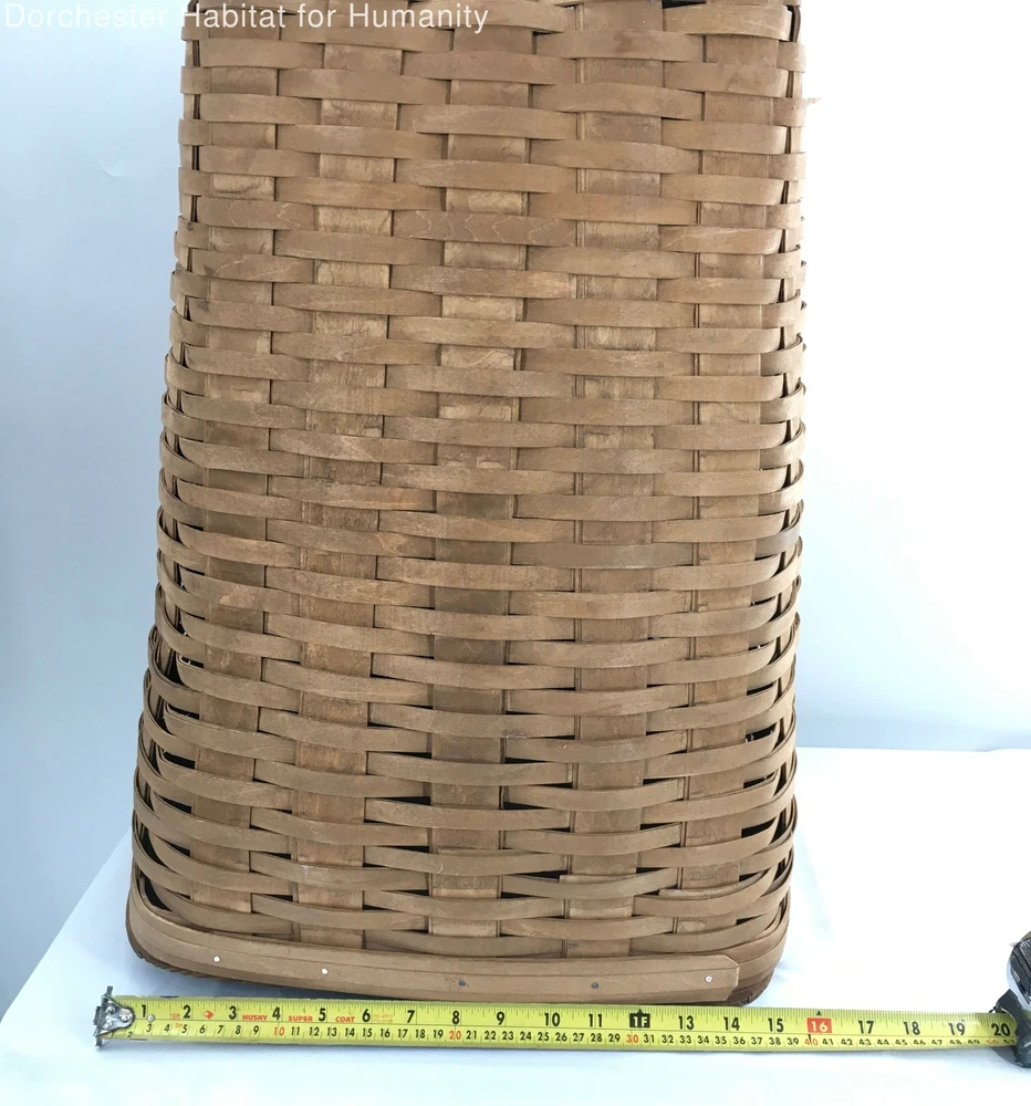 Longaberger 12x15x23 Basket Brand: Longaberger Type: 12x15x23 Basket Condition: Fair - shows sign of wear - please see all pictures, item comes as is. Lid has an imperfection. The Large Collectible Laundry Basket from Longaberger is a well-crafted, handwoven basket that exemplifies the brand's dedication to quality and craftsmanship. Here are some key details about this specific basket: Key Features: Size : Measuring approximately 12 inches in width, 15 inches in depth, and 23 inches in height, this basket is designed to hold a substantial amount of laundry or other items, making it both functional and decorative. Material : Longaberger baskets are made from high-quality natural materials, typically using sweetgrass and other sturdy fibers. The craftsmanship involved in weaving these baskets is a hallmark of the brand. Design : The basket often features a classic, woven design, sometimes with decorative elements like colored bands or liners. The aesthetic appeal makes it suitable for use in various settings, from laundry rooms to living areas. Functionality : While primarily used for laundry, this basket can serve multiple purposes, such as storage for toys, blankets, or other household items. Its sturdy construction allows it to handle weight well. Collectibility : Longaberger baskets are highly collectible, and pieces like this one often increase in value over time, especially if they are part of limited editions or feature unique designs. Care : While these baskets are durable, they require some care to maintain their appearance. Regular cleaning with a soft, dry cloth and avoiding exposure to excessive moisture can help preserve their quality. Usage Ideas: Laundry Storage : Perfect for organizing and storing laundry. Home Décor : Can be used as a decorative piece in living rooms or bedrooms. Gift Basket : Ideal for creating themed gift baskets for special occasions. Longaberger baskets are renowned for their handcrafted quality, durability, and unique designs. Here’s an overview of the brand and its products: Overview: History : Founded in 1973 by Dave Longaberger in Dresden, Ohio, the company quickly became known for its handcrafted, woven baskets. The brand grew significantly, becoming a prominent name in American home decor. Craftsmanship : Each Longaberger basket is meticulously crafted from natural materials, primarily using maple and other durable woods. The weaving process is done by skilled artisans, ensuring that every basket is unique. Designs : Longaberger baskets come in various styles and sizes, ranging from functional items like laundry baskets and wastebaskets to decorative pieces and collectible items. Many designs are inspired by traditional American craftsmanship and feature distinctive shapes and patterns. Collectibility : Longaberger baskets have become highly collectible over the years. Limited edition pieces, seasonal designs, and collaborations often attract collectors. Some baskets can appreciate in value, making them sought after by enthusiasts. Important Notice to Our Valued Customers: To ensure a smooth and efficient transaction, please select the Local Pick Up option at the time of payment if you intend to pick up your order locally and in person. Local Pickup Policy Pickup Timeline: Items must be picked up within 7 days of purchase Failure to pick up within this timeframe will result in forfeiture of the item purchased and no refund will be granted. Please Note: Orders that have a shipping option selected at the time of payment will be shipped to the address provided. Items are available for pick-up between the hours of 9:00 am - 5:00 pm, Monday through Saturday Thank you for your understanding and cooperation!