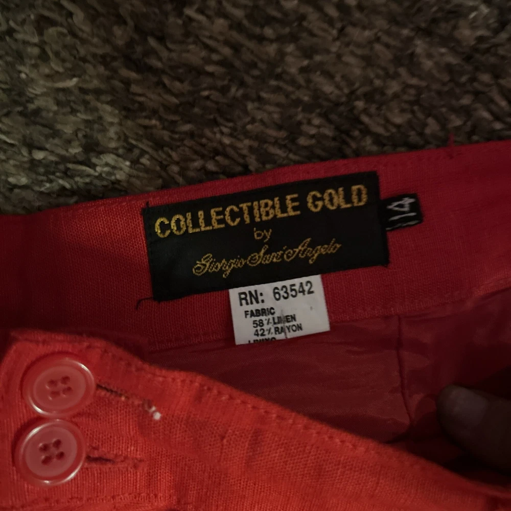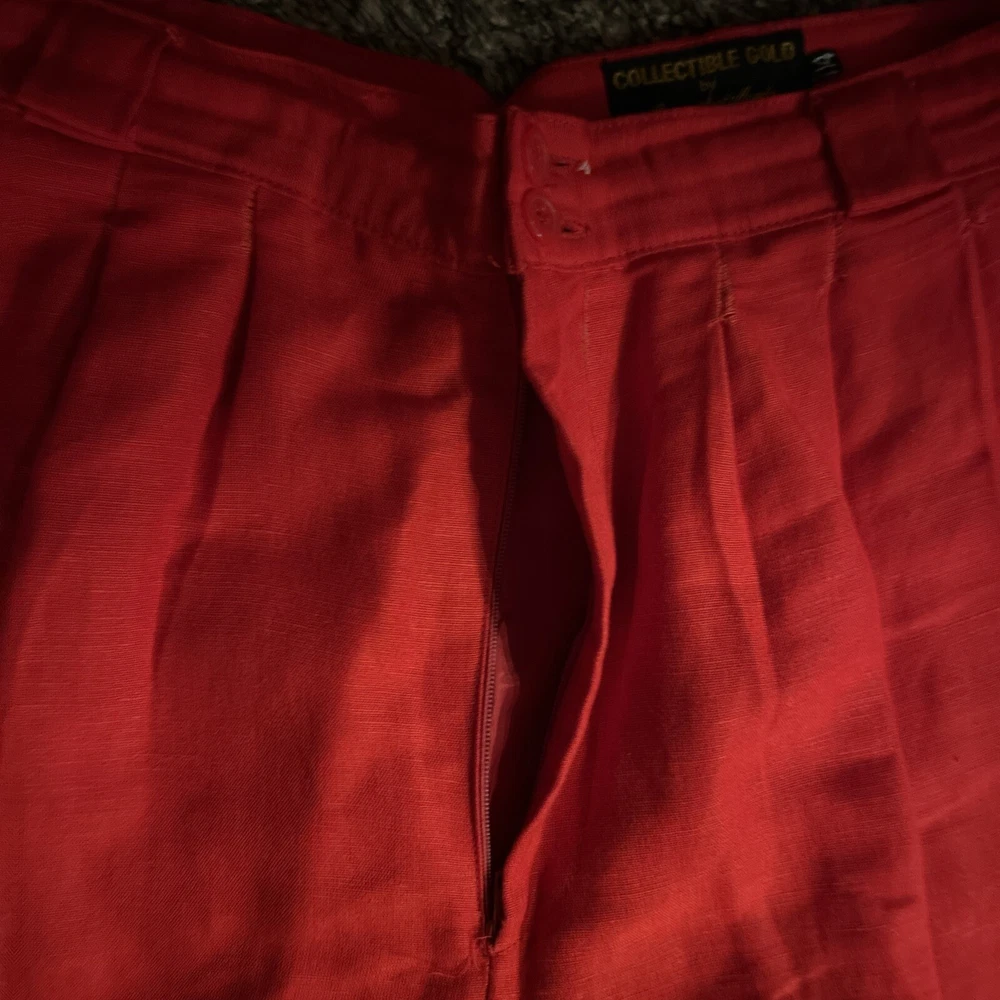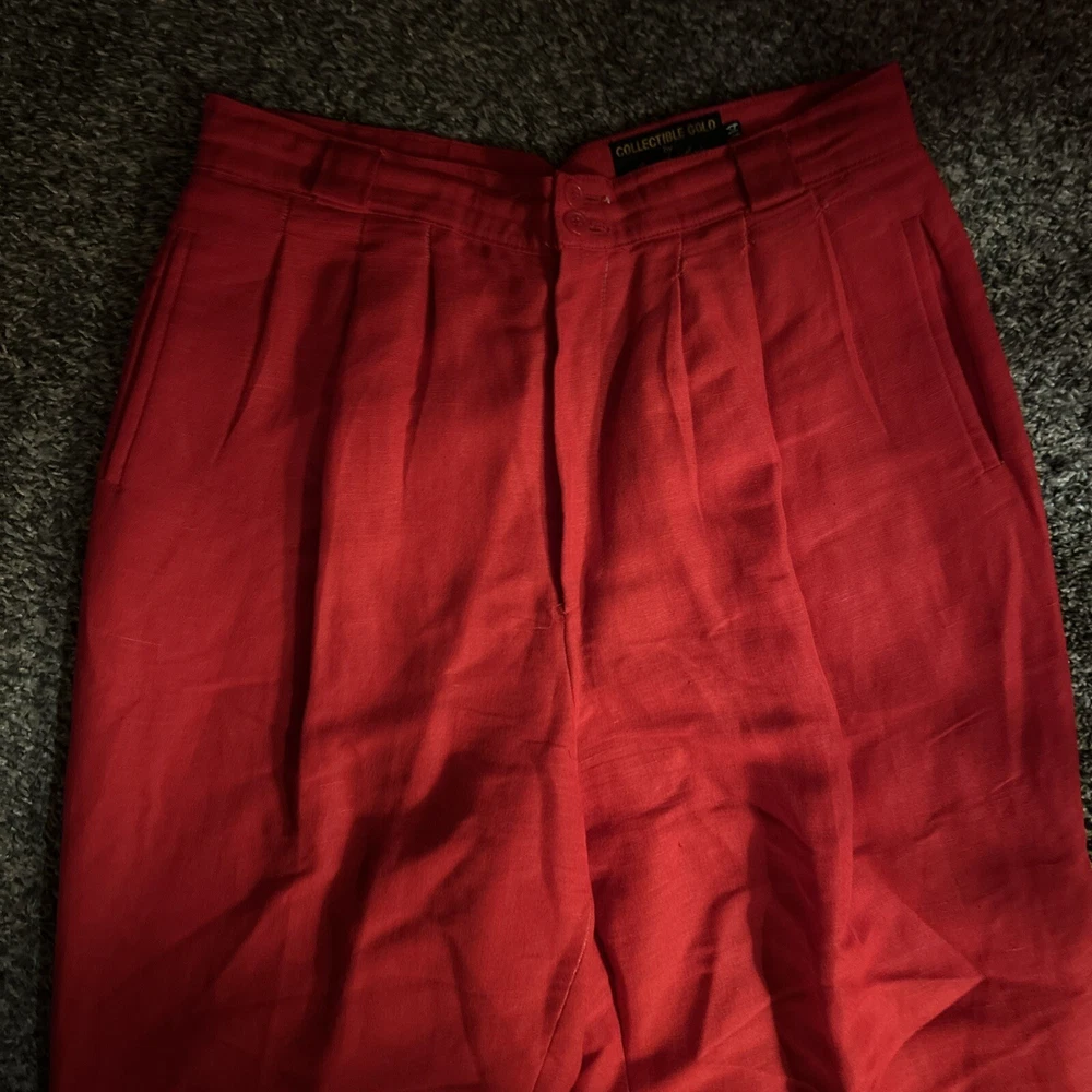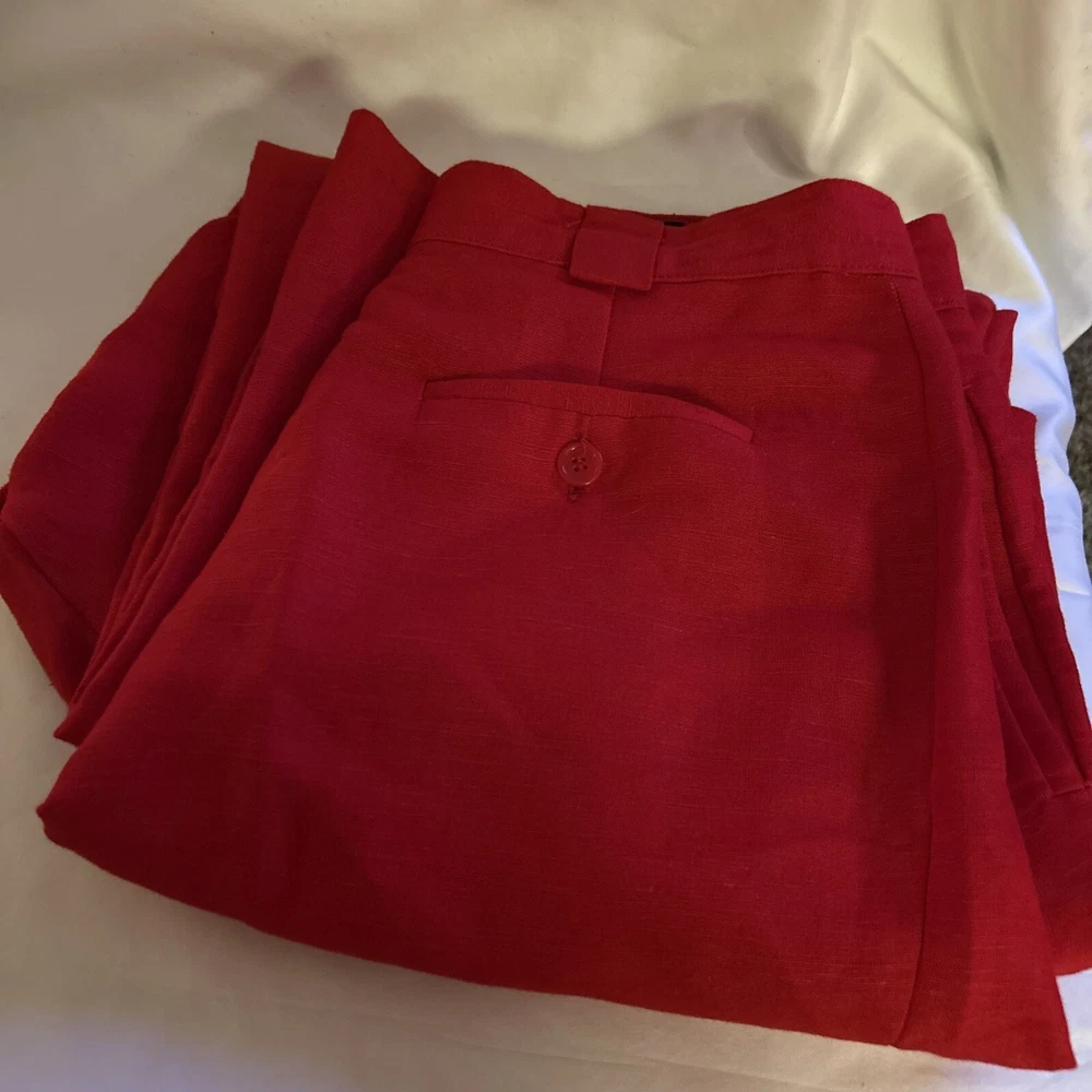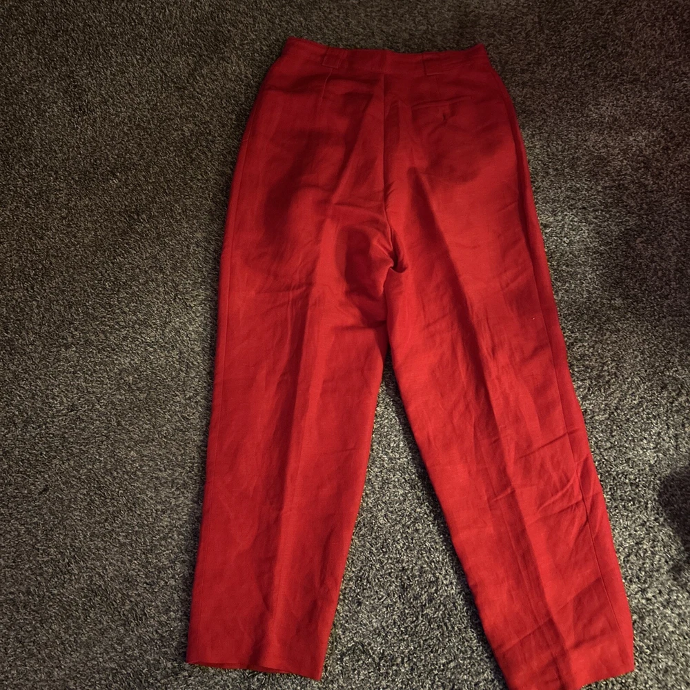 Style: Dress Pants Department: Women Size: 14 Occasion: Business, Casual, Formal Vintage: Yes Type: Pants Material: Linen, Rayon Color: Red Pattern: Solid Brand: Giorgio Sant'Angelo Features: Comfort, Pockets Closure: Button, Zip Accents: Button, Pleated, Zipper Leg Style: Straight Fit: Classic Size Type: Regular