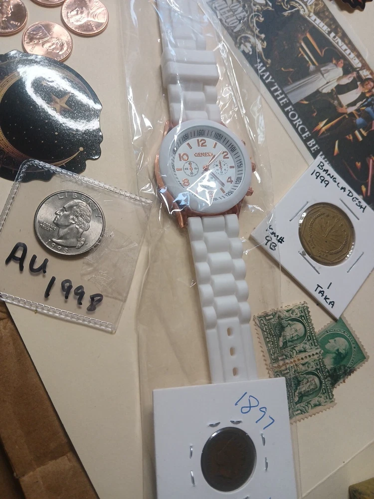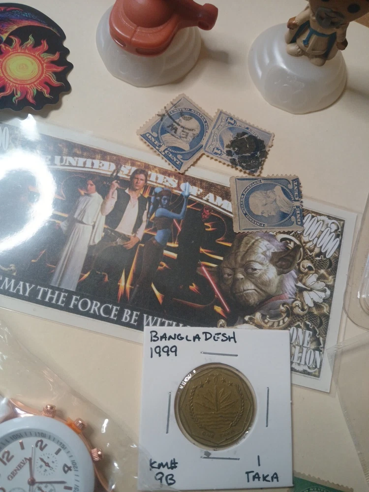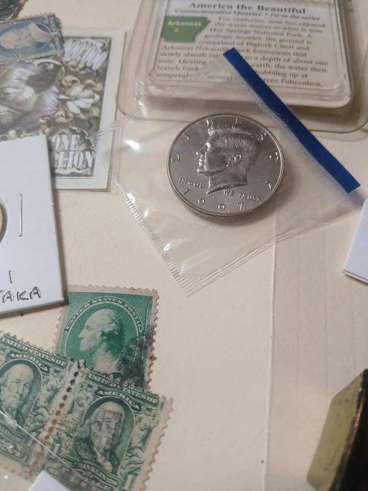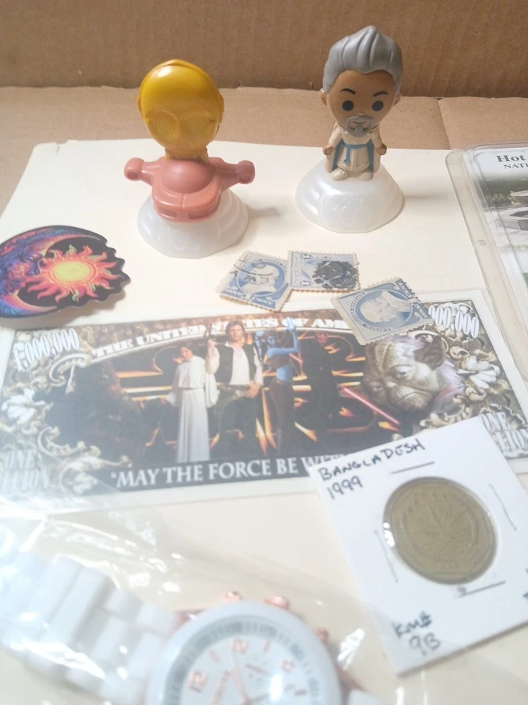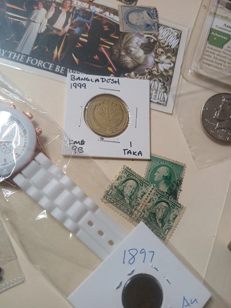 Lot#3 This is a collectible junk drawer coin lot from the United States, featuring various items such as an 1897 Indian Head coin, a 1997 JFK Unc coin, and Star Wars collectibles. The lot includes over 20 items and is a mix of different collectibles, making it perfect for collectors or those interested in a variety of items from different eras. The lot offers a diverse range of collectibles that may appeal to a wide range of collectors.