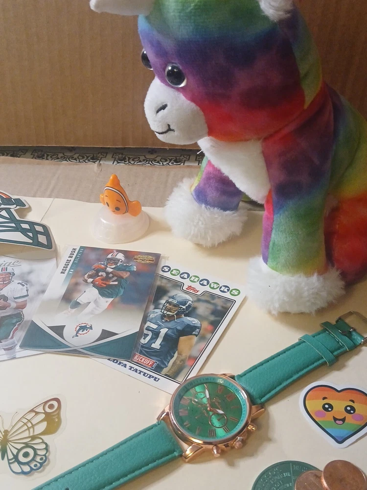 Lot #68 is a Disposable Me4 toy lot 5 new toys n box plushy ×3 and a cute new bracelet