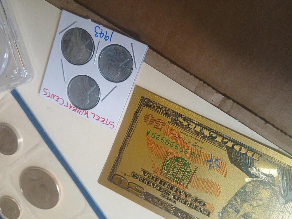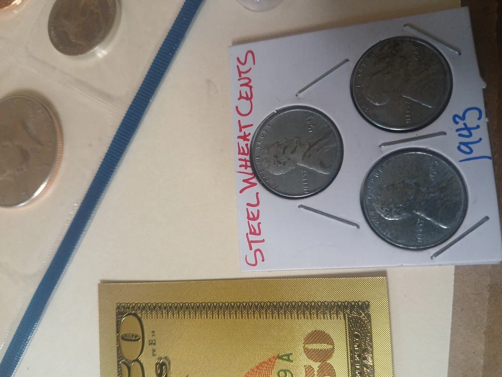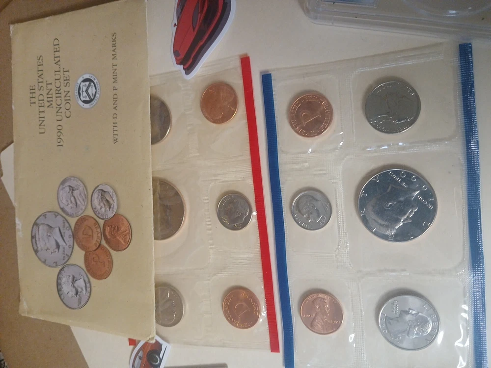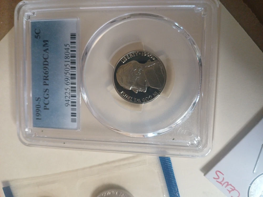 Lot#4 has 1990 pcgs 5c 69 pr 1990 p&d mint set 1943 3 steel wheat football cards Forgien coins uncirculated and circulated coins jewelry and more