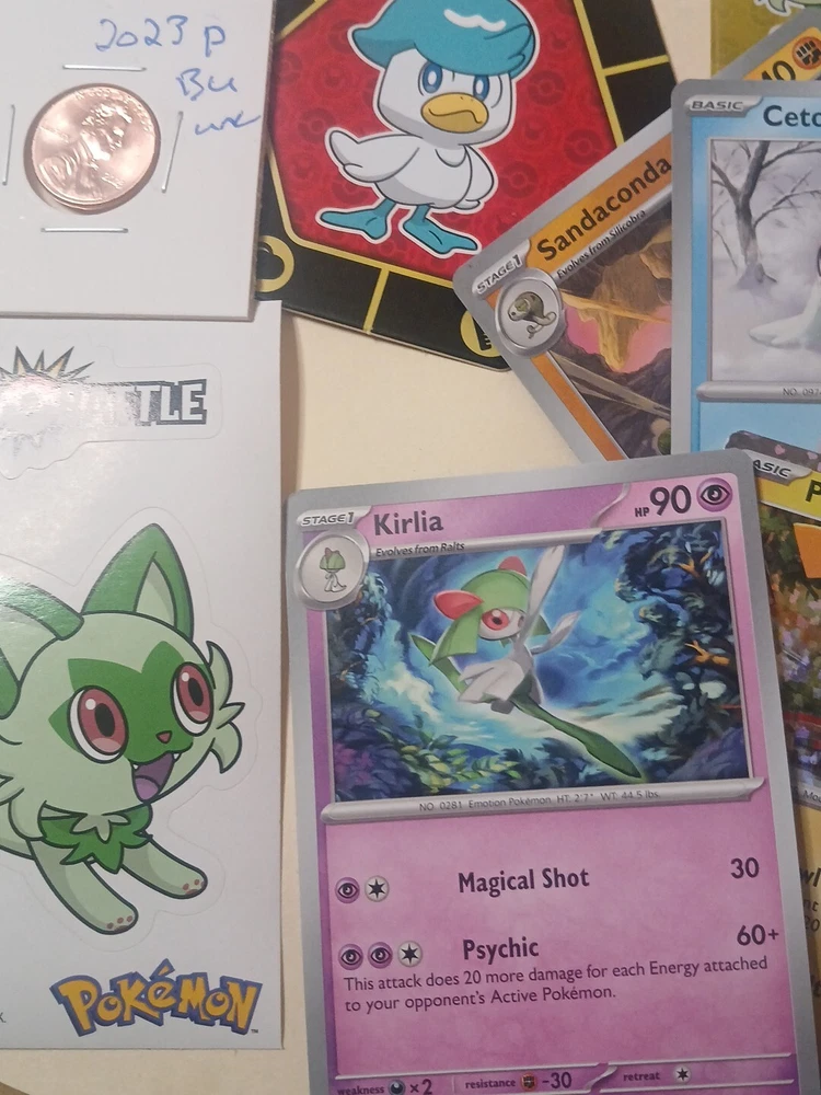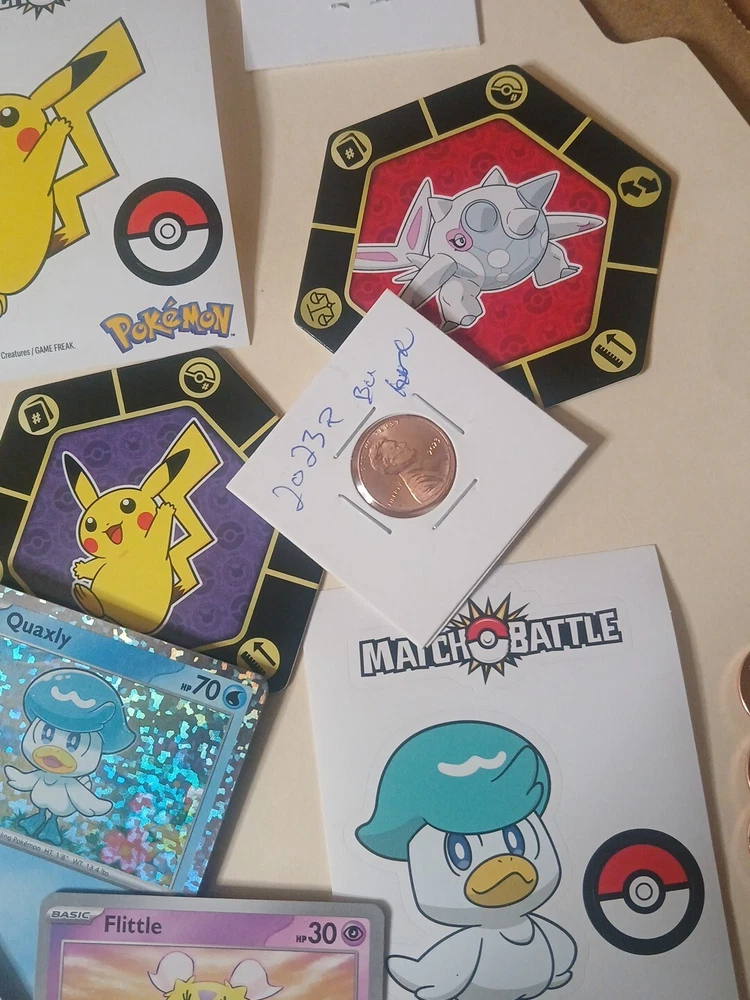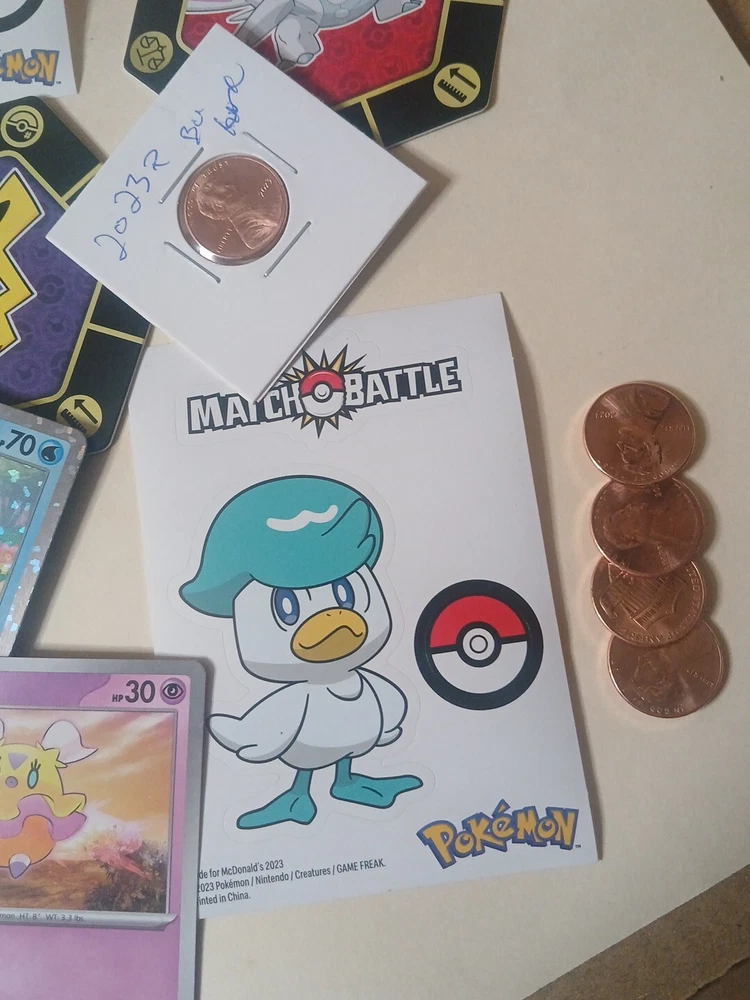 Collectible Junk Drawer Coin Lot 2000 Dime 2016 Dime 2023 Penny Pokémon Cards