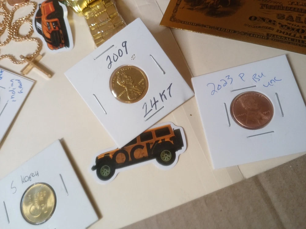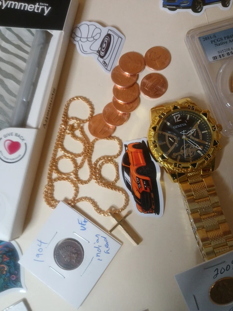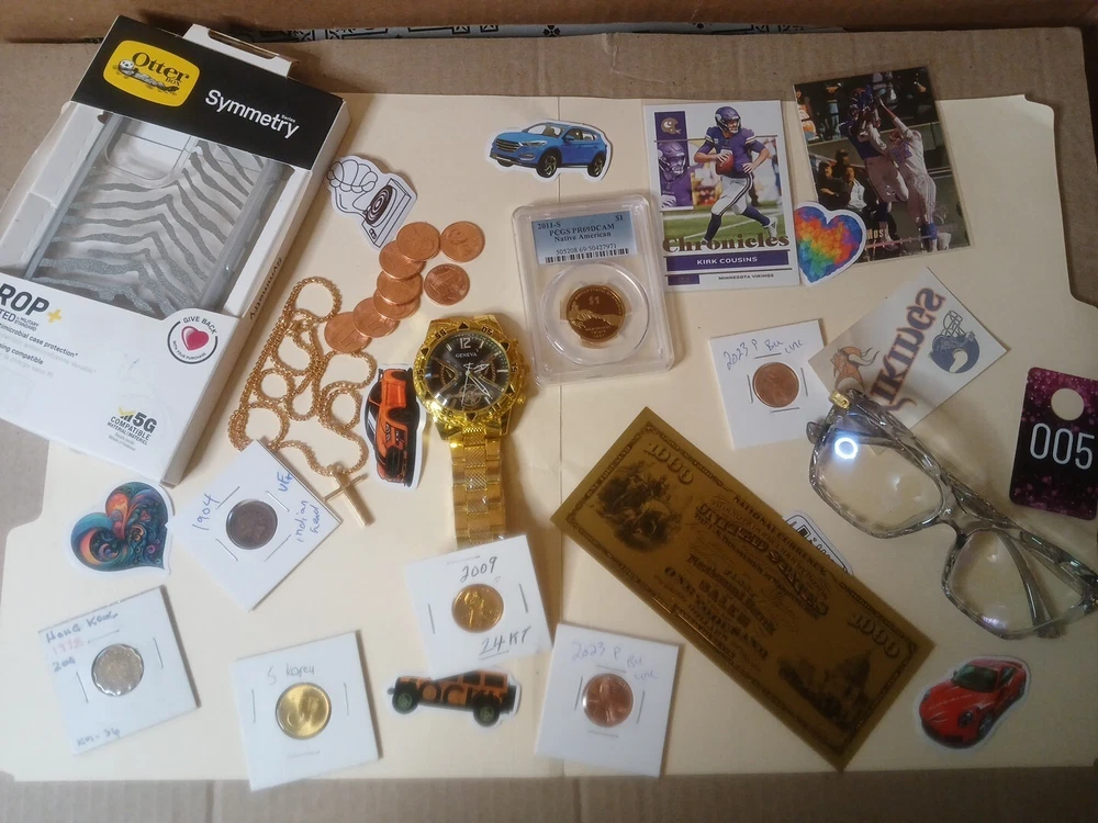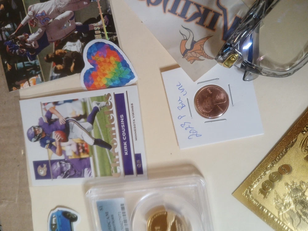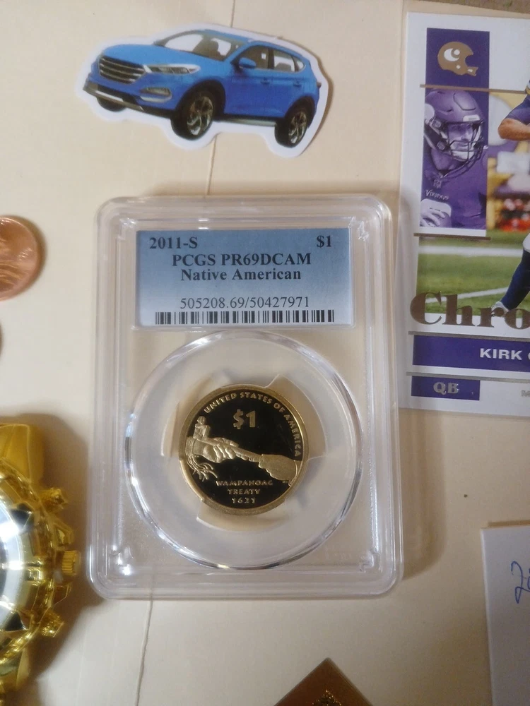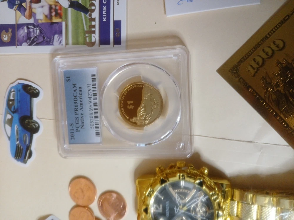 Lot#5 includes 2001s pr69 Sacagawea $1 1904 vft Indian Head 2009 24 kt plated gold iphone 12 case Kirk Cousins card watch glasses and more