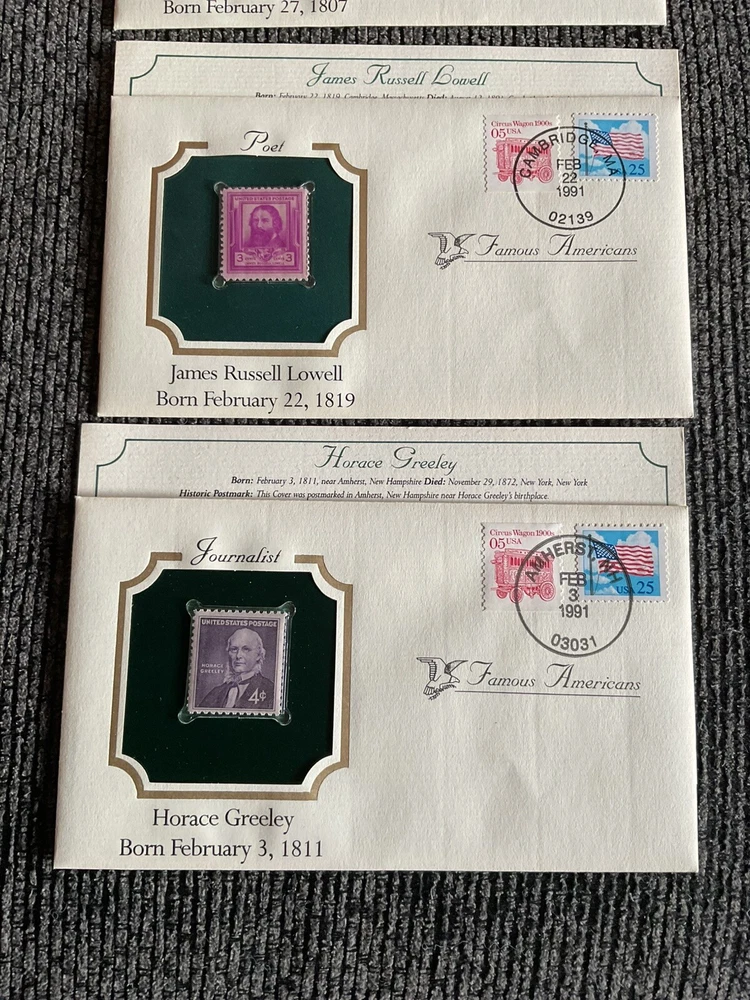 Stunning lot from the postal commemorative society, famous Americans, beautiful content on these envelopes. Own a piece of history.