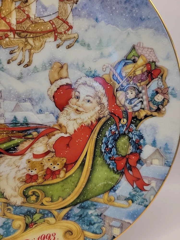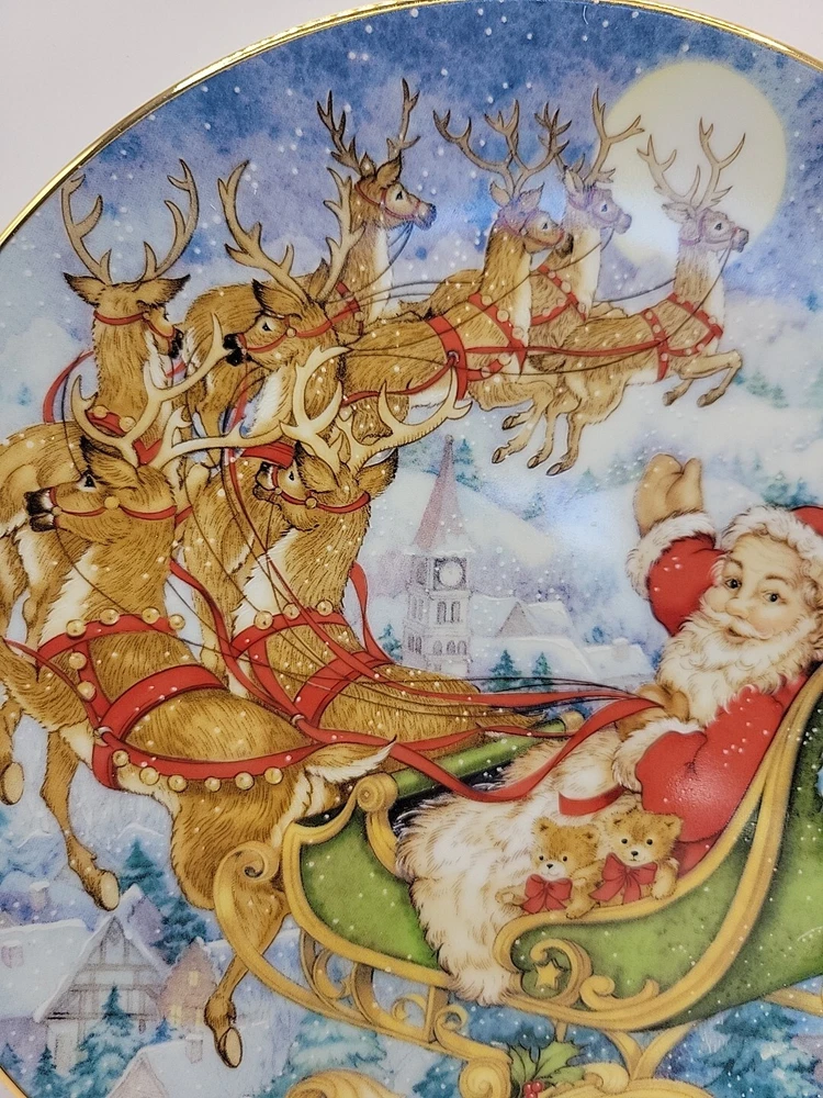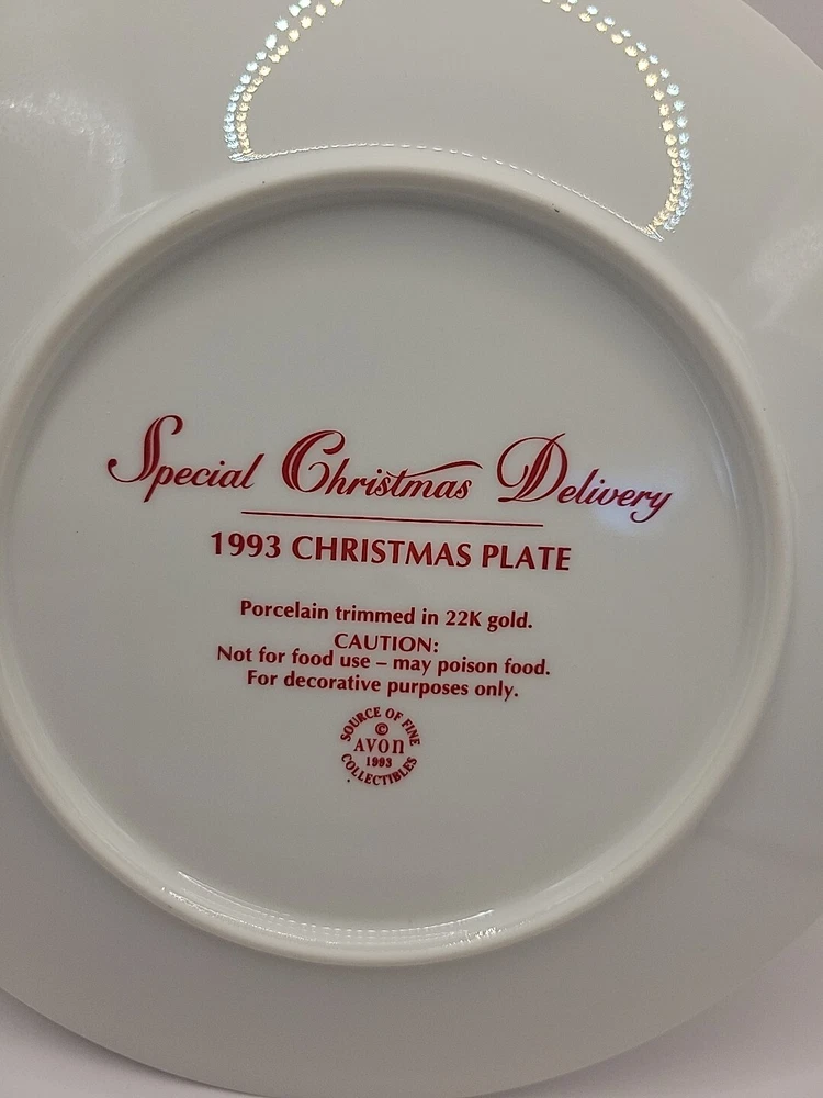 This Avon collector plate is a must-have for any Christmas decoration enthusiast. Featuring a colorful design of Santa's sleigh, reindeer, and a festive wreath, this 8-inch plate is perfect for displaying on a shelf or tabletop. Made in China in 1993, this plate is part of the Avon product line and is a great addition to any collection of decorative collectibles. The plate is in excellent shape and comes with an unknown California Prop 65 warning. Get your hands on this unique piece of American culture today!