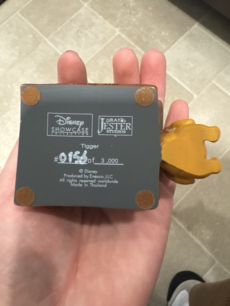 The collectible Tigger figurine from "Winnie The Pooh and The Blustery Day" is a limited edition piece numbered 156 out of 3000. Made by Disney, this figurine features the beloved character Tigger from the Winnie the Pooh franchise. Perfect for fans of the classic TV show, this figurine captures the charm and nostalgia of the Hundred Acre Wood. A must-have for any Disney collectibles enthusiast, this figurine is a special addition to any Winnie the Pooh collection. In excellent condition.