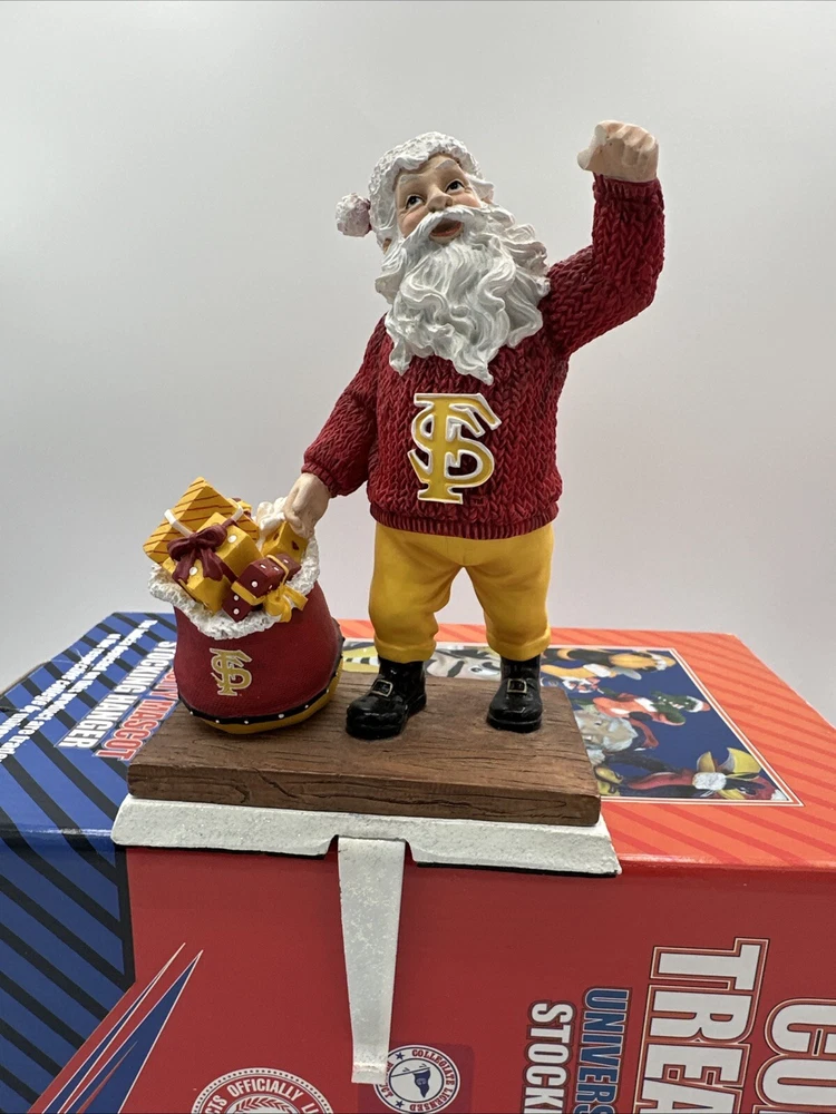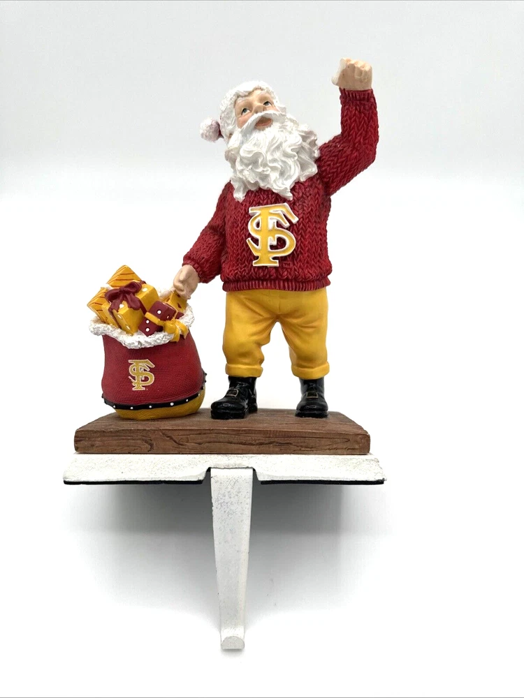 Show off your team pride this holiday season with this College Treasures Florida State Christmas Stocking Holder. Perfect for any fan of the Florida State Seminoles, this stocking hanger features the team's iconic logo and colors of red and yellow. It's a great addition to any collection of fan apparel and souvenirs, and is sure to be a conversation starter during the festive season. This product is designed for unisex adults and is licensed collegially, ensuring that you are getting a high-quality and authentic product. Get ready to show off your team spirit this holiday season with this unique and fun stocking holder! Measures 7"x4.5"x3" plus hook. **Pre-owned condition. The stocking has broken off but is included. Could be glued back on. See photos.
