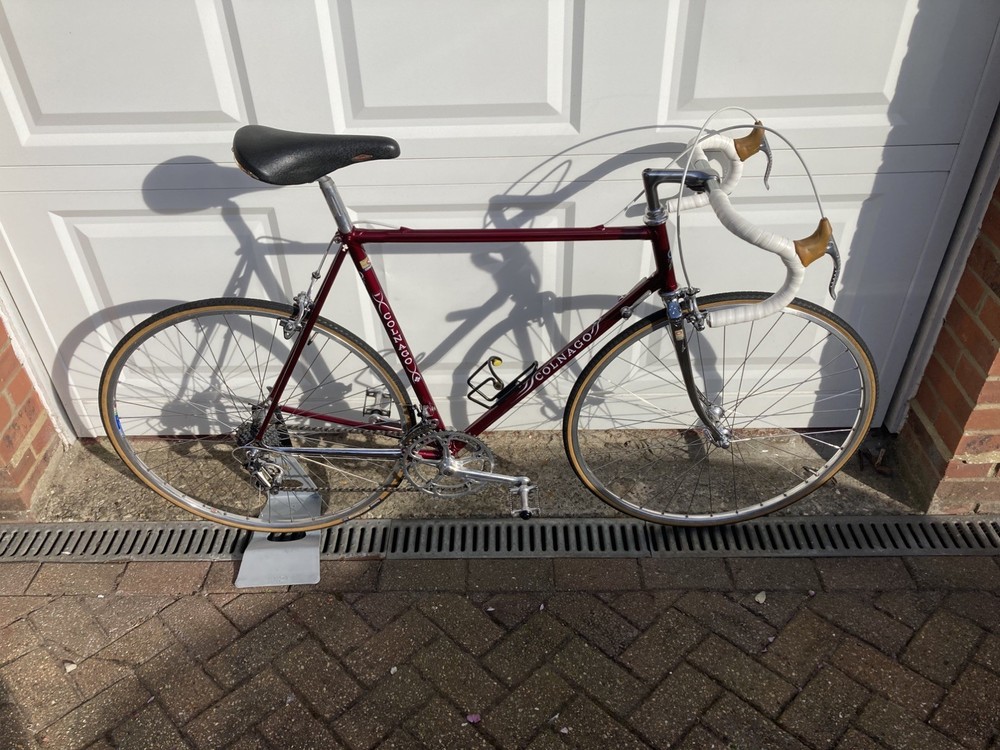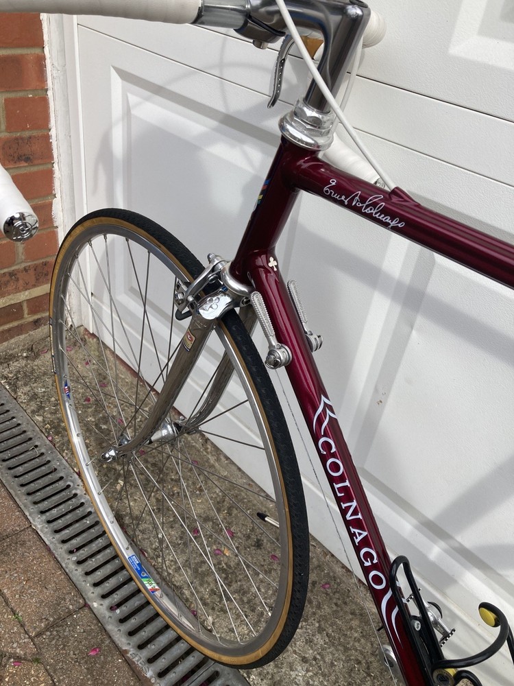 This superb Colnago ESA Mexico Road Bike is priced for a quick sale. These were produced between 1987-89 making this one of Colnago’s super rare bikes. The SL frame has a 56cm top tube and a 58cm downtube and is super light for the era and comes with top spec Campagnolo Super Record 6 speed groupset, 3tt components and Italian Nisi HR22 Clinchers wheels with campagnolo record hubs. It’s in very good original condition for a bike of this age. Please review pictures to appreciate this. If you know your bikes then you’ll appreciate the absolute quality of this high quality vintage Colnago. Would suit someone 5’10” and above .