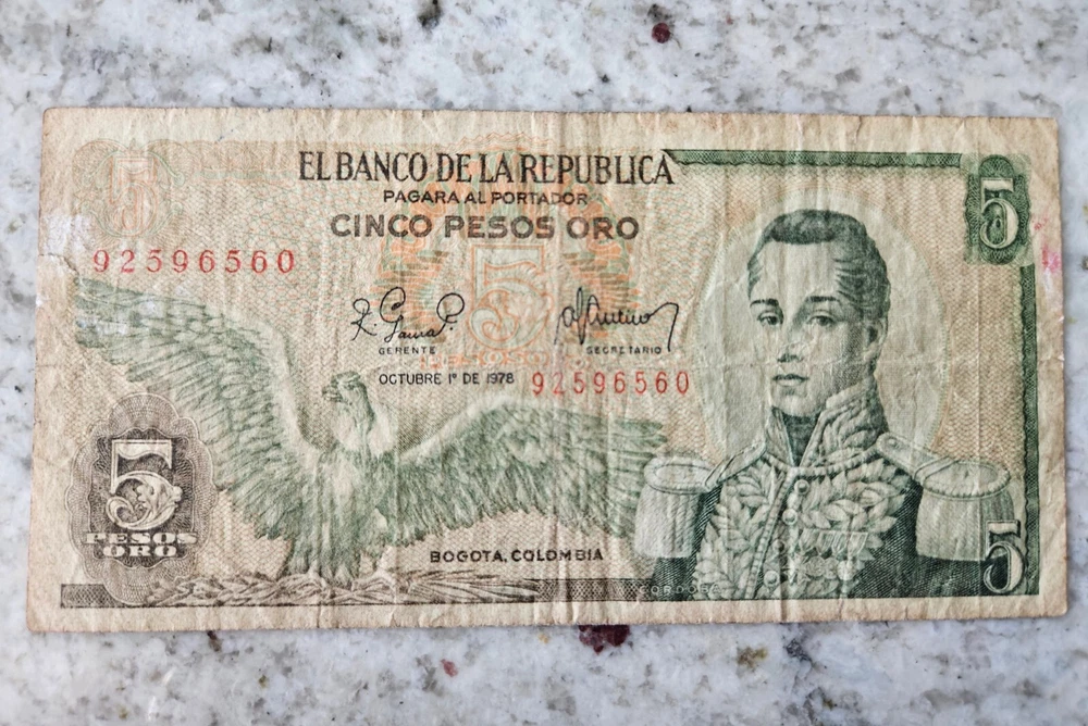 This is a circulated Colombia 5 Pesos banknote which is dated back to 1978... I'm selling off my collection of currencies from around the world. What you see pictured, is the banknote that you'll be getting.. Thanks for checking out the auction.. Yes, I do combine shipping !!
