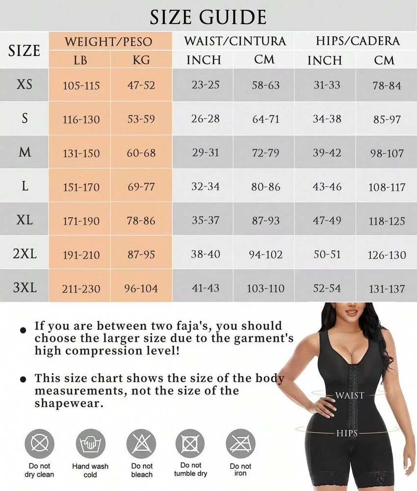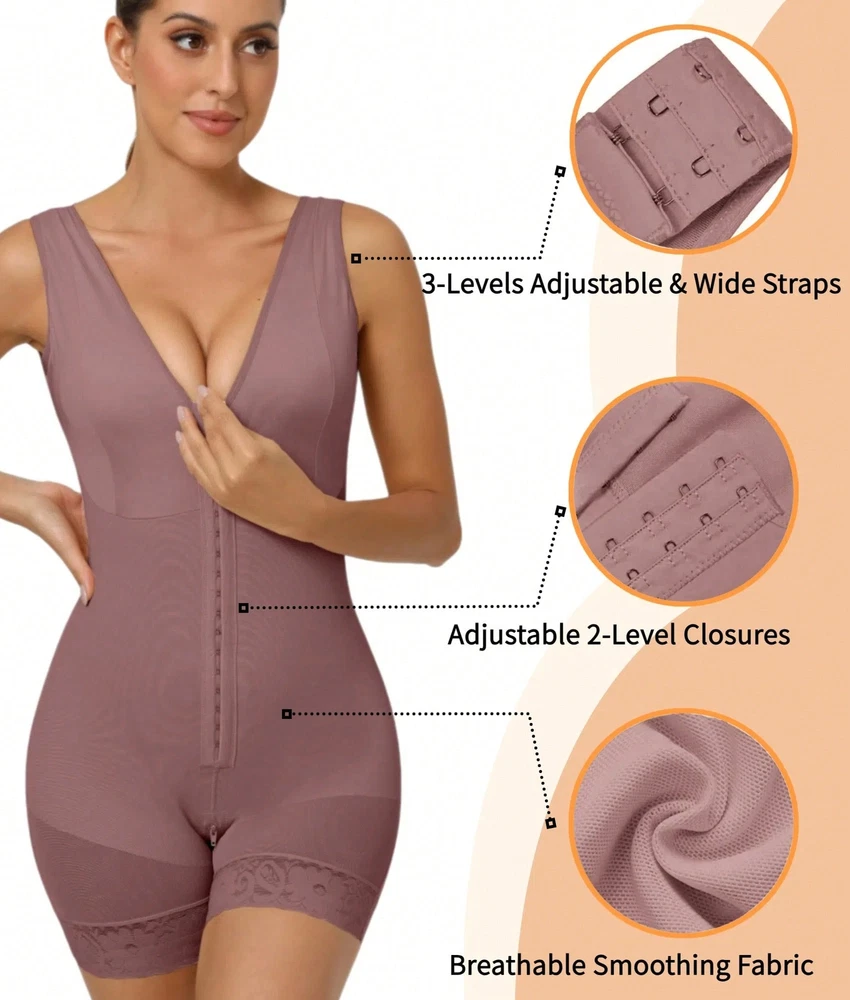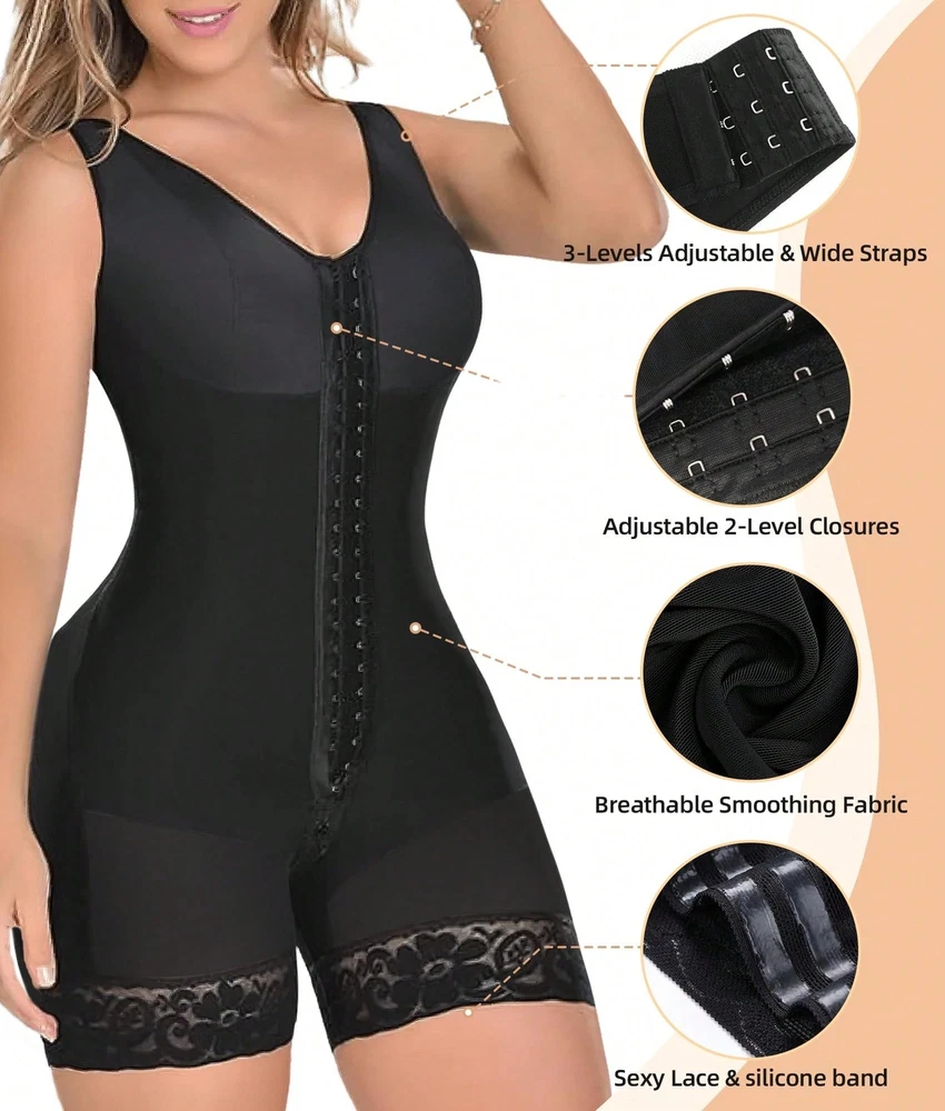 Our store cannot deliver to the warehouse and freight forwarding address, please understand! Because each state has some specific product transportation policies, if we encounter special circumstances and cannot deliver! Description COMFORTABLE WIRELESS BREAST LIFT DESIGN - Our full shapewearfeatures a wireless chest support design, ensuring you won't feel tight whilewearing it The Fajas Colombianas Moldeadoras provide full coverage for yourchest, offering a gathering and shaping effect that combines comfort withalluring curves. Thanks to its high-elastic fabric, this body shaper adapts tomost chest shapes. TUMMY CONTROL SHAPEWEAR - The inner fabric is soft and skin-friendly.minimizing discomfort from direct mesh-skin contact. The outer mesh deliversmedium compression to hold in the stomach, tighten the midriff. and reduce thewaistline instantly, Our faja shapewear tummy control addresses commonconcerns about abdominal fat, helping you look more elegant in any outfit WIDE STRAPS & HOOK-EYE CLOSURE - Extra wide shoulder strapscombined with 3 rows of hook-and-eye fasteners allow for free size adjustmentreducing shoulder pressure and ensuring all-day comfort. The faja bodyshaper's tummy control 2-row hook-and-eye closure adapts to your bodyshape, eliminating bulges and providing ample control for your tummy andback. BUTT LIFT & OPEN CROTCH This faja shapewear for women features azipper crotch design for easy access to the toilet without removing the entiregarment. The lace design at the bottom of the legs prevents rolling up. Wearthis butt-lifting shapewear to enhance your look in any outfit, enjoying yourbeauliful curves effortlesshy. RENEW YOUR BODY IN LESS TIME -This fajas post-surgery compressiongarment is ideal for use after liposuction or during recovery. lts versatility alsomakes it suitable as fajas postparto, helping your body return to its originalshape after pregnancy.