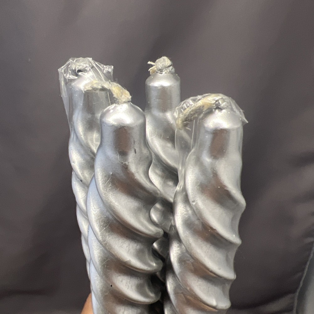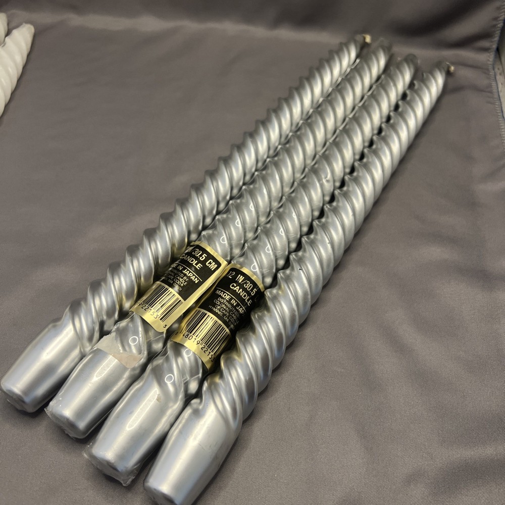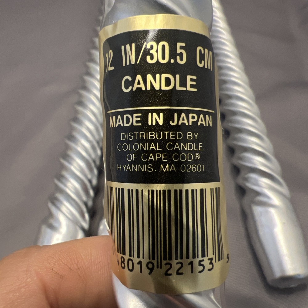 This product is a set of four 12-inch silver taper candles by Colonial Candle. These hand-dipped candles are made of wax and are ideal for adding a touch of holiday ambiance to any home decor. Each candle is crafted in the United States and does not come with a scent. Perfect for creating a warm and festive atmosphere during the holiday season or any special occasion.