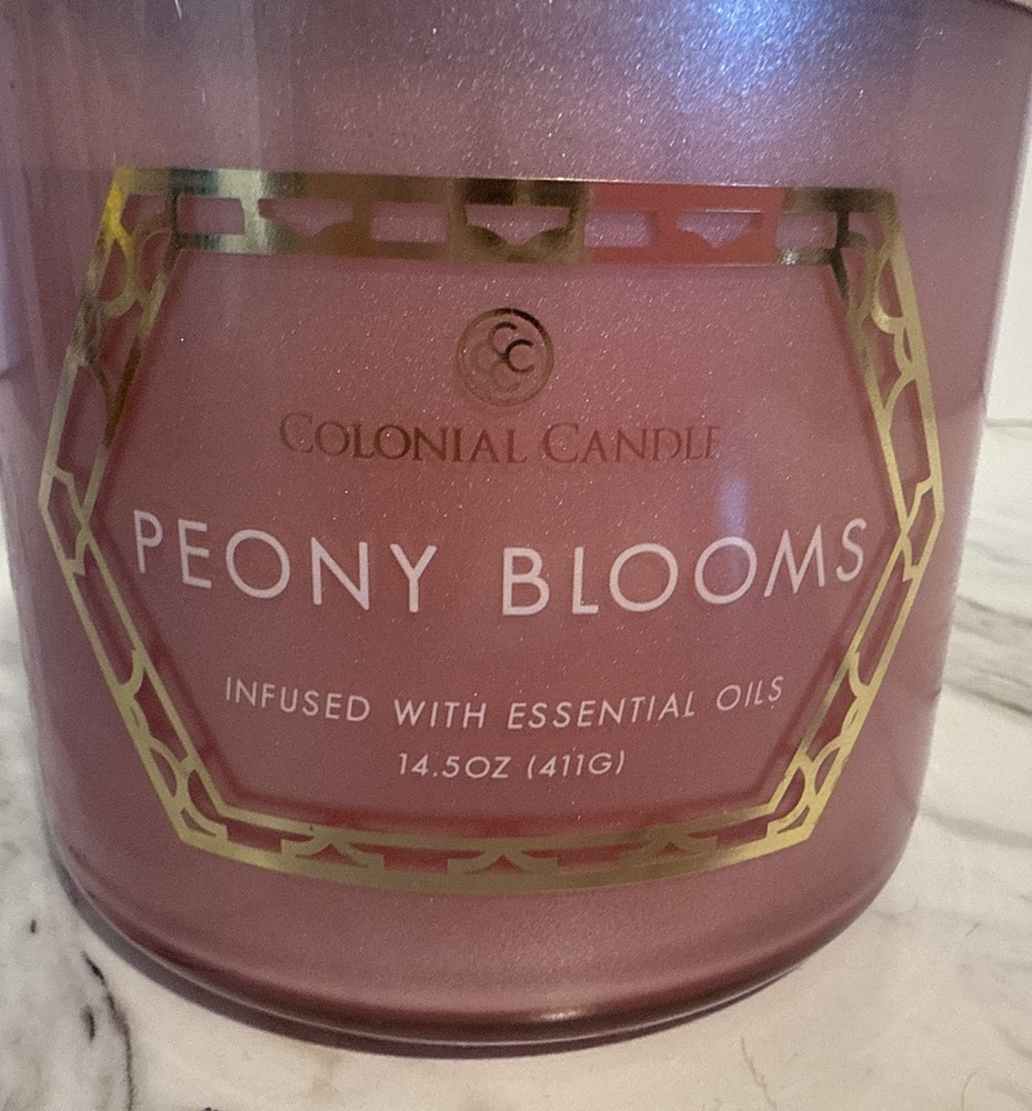 Colonial Candle PEONY BLOOMS 3 Wick NEW 14.5 Oz Infused With Essential Oils NEW Thank you for looking and supporting my small business!