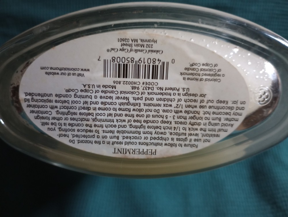 The Colonial at Home 22oz Dual Wick Candle in the scent "Peppermint" offers an exquisite home fragrance experience. This oval-shaped candle comes in a classic white color, reflecting the Colonial style. With a peppermint scent, this scented candle is perfect for creating a refreshing and invigorating atmosphere in any room. The dual wick design ensures even burning and a long-lasting fragrance, making it a luxurious addition to your home decor and ambiance.