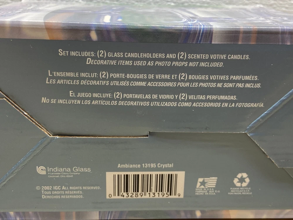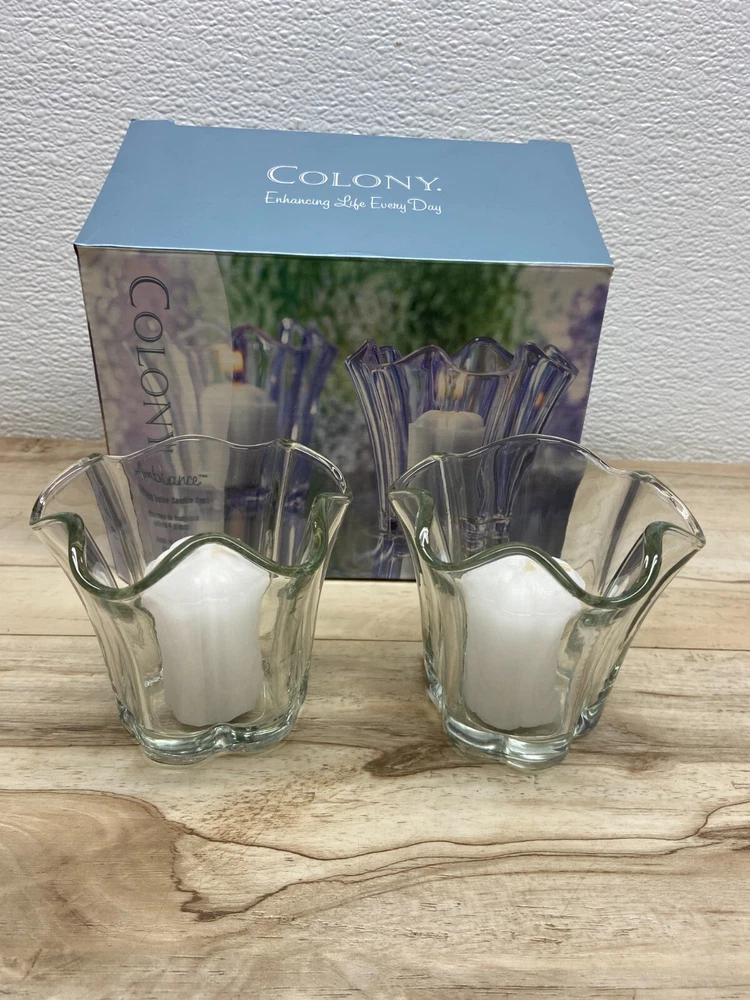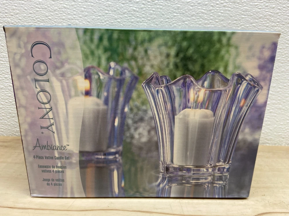 Colony Ambiance 4 Piece Votive Candle Set.Includes 2 glass candle holders and scented votive candles.New-open box. WE OFFER COMBINED SHIPPING AND MULTI-ITEM PURCHASE DISCOUNTS.IF YOU HAVE ANY QUESTIONS, PLEASE LET US KNOW