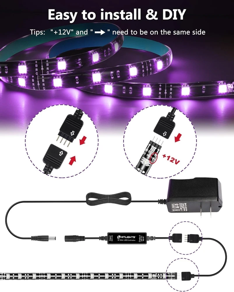 Color Changing LED Tape Light Kit with RF Remote - Perfect for Home and Holidays