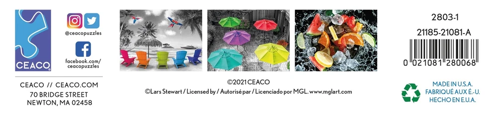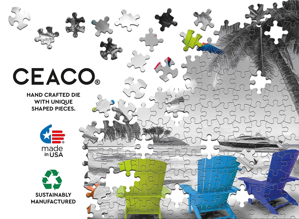 At , we pride ourselves on developing and maintaining long standing relationships with some of the finest artists of our time. Our talented team of designers and marketing professionals are always searching the world over for developing trends, emerging artwork, and new technologies involving printing, die cutting, and unique puzzle materials. Our purpose is clear: to continue to be in the forefront of our industry and create a product that combines family entertainment with a distinctive aesthetic. Contains a 750 Piece Jigsaw Puzzle Finished Size is 21 x 21 Inches Full Color Bonus Poster Included for Help in Solving Sustainably Manufactured Using Premium Quality Recycled Materials Made in the USA