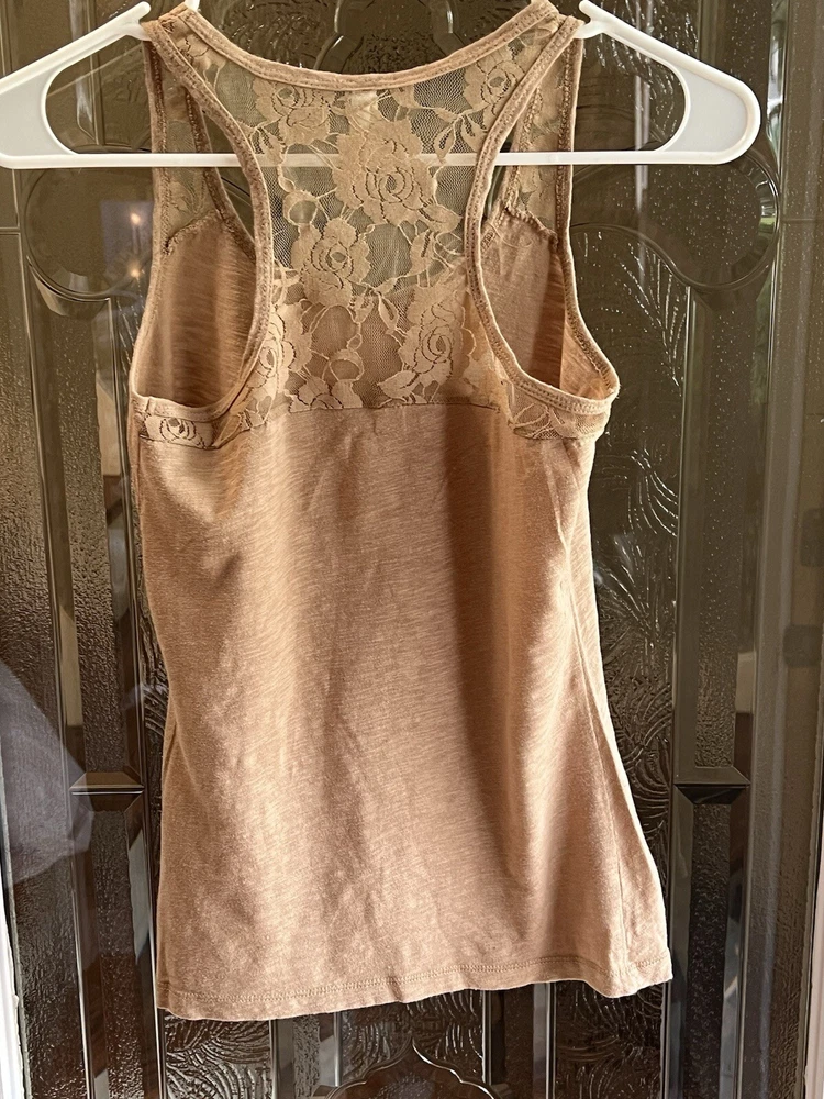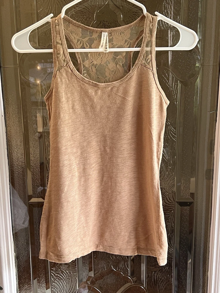 Color Story Tank Top Womens M Medium Beige Scoopneck Racerback Mesh Stretch