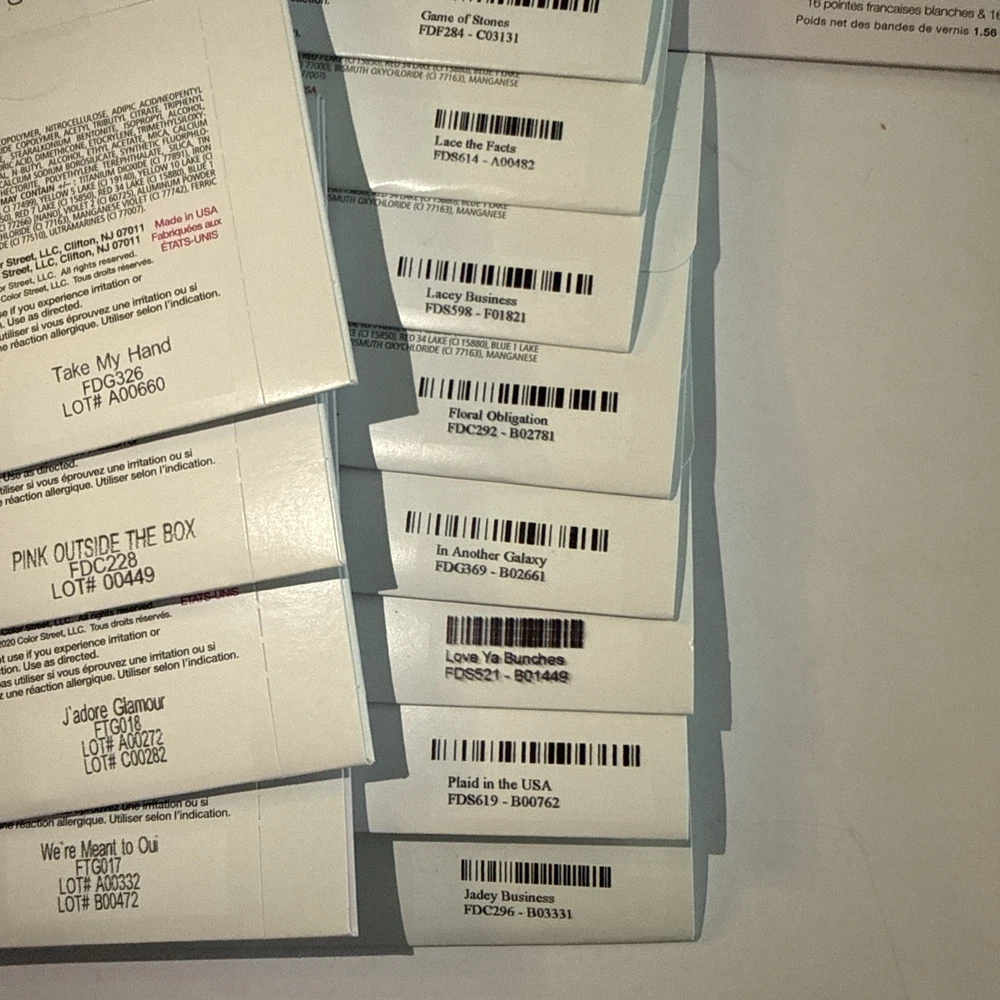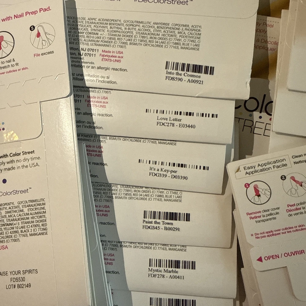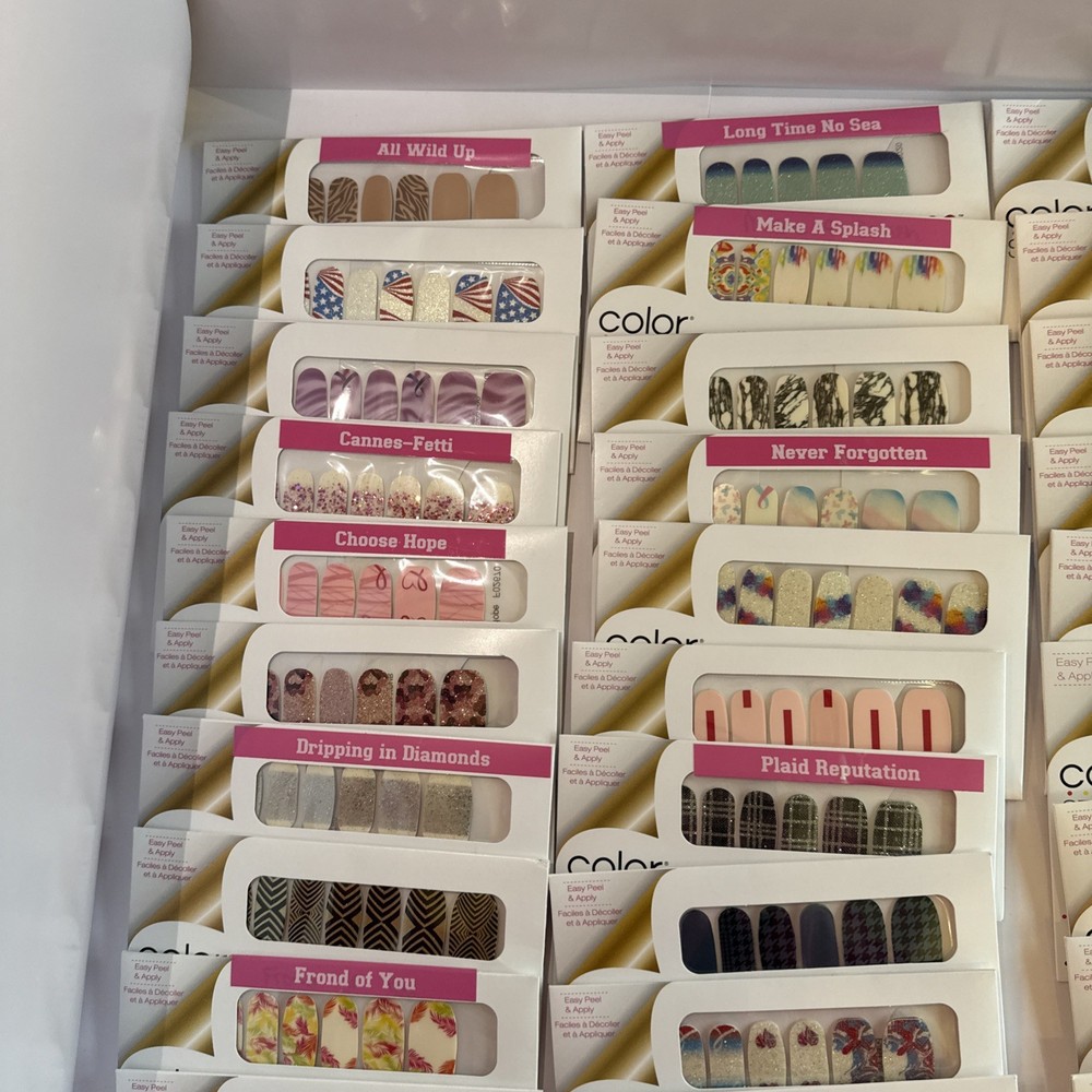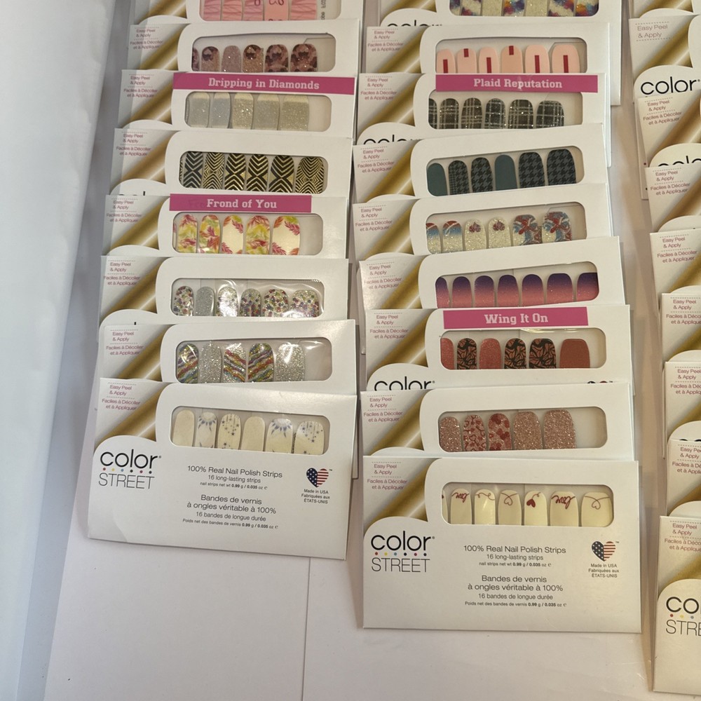 The is a lot of Color Street nail strips, consisting of 50 new packages in french manicures and designs! These nail polish strips are from the retired designs, offering a variety of colors and styles to choose from. As a popular brand in the nail care industry, Color Street provides a convenient and easy way to achieve professional-looking nails at home. These nail strips are a popular choice among beauty enthusiasts looking to add a touch of color and sparkle to their manicures and pedicures. Comes from a smoke-free home. Labeled with the names for convenience, unlabeled have names in pictures. These are retired Color Street sets and have been stored for some time. Due to age, some sets may be partially dried. Priced accordingly and sold as-is. Lot - D for inventory purposes