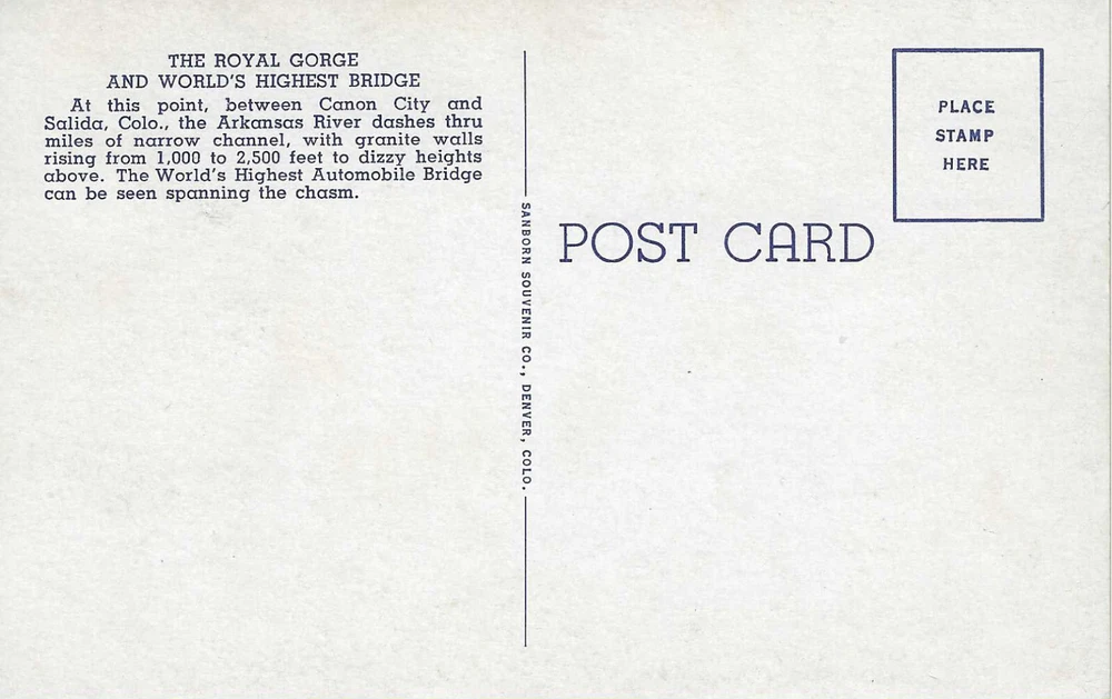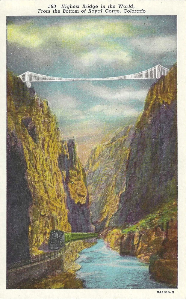 Colorado ~ Highest Bridge in the World from the Bottom of Royal Gorge ~Linen UNP The card is in good condition for it's age as shown above in the actual photos of this item. Standard sized vintage postcard. Minor, creases, corner issues, and etc. are to be expected from an item of this age. Please see photos. I pack with thick cardboard around the sleeved card and provide tracking with shipping. Purchase multiple postcards at the same time and combine shipping for a discounted shipping rate! See our store for more postcards like this one!