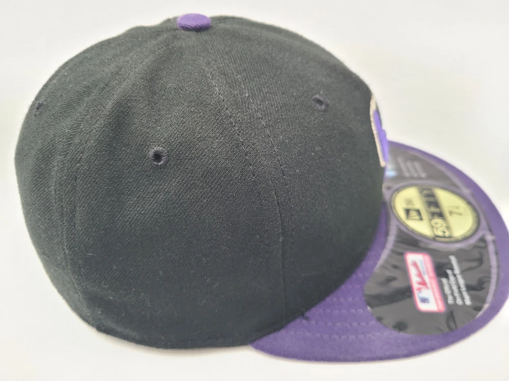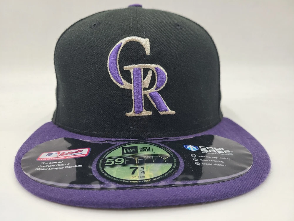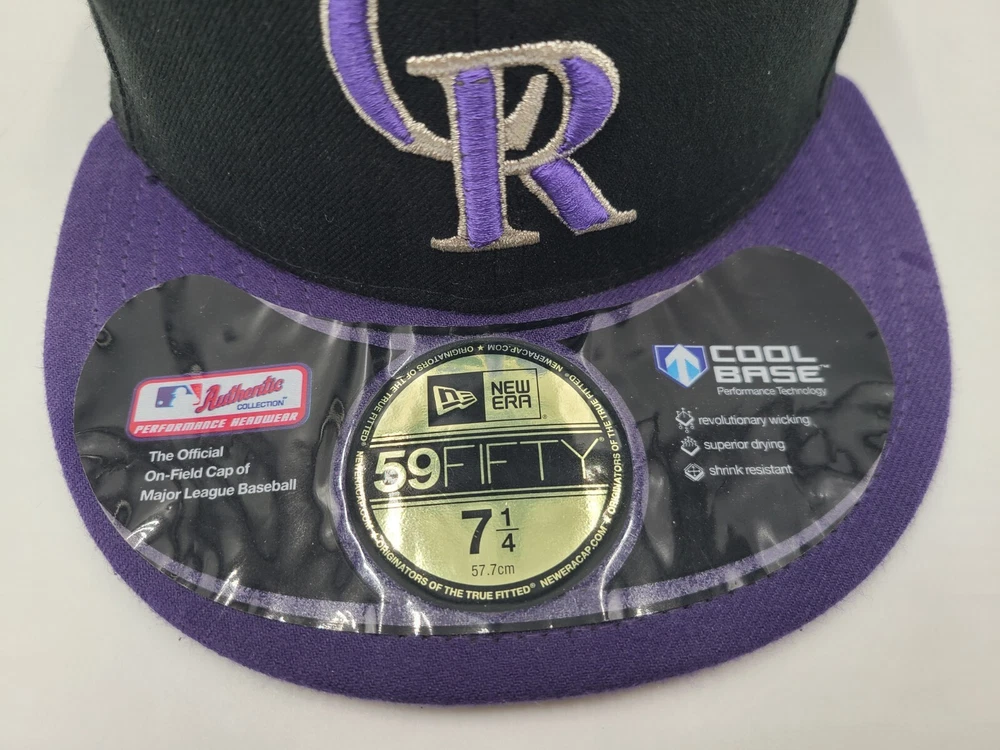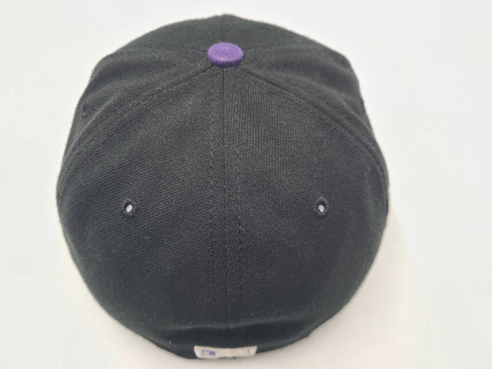It seems like there will be a mark left over is the sticker is removed. Also has some stains on the brim and wear underneath the brim as seen in photos. Colorado Rockies New Era 59Fifty Fitted 7 1/4 Hat Cap MLB Baseball Black Purple. EACH ADDITIONAL HAT PURCHASED IS ONLY $1 ADDED SHIPPING!