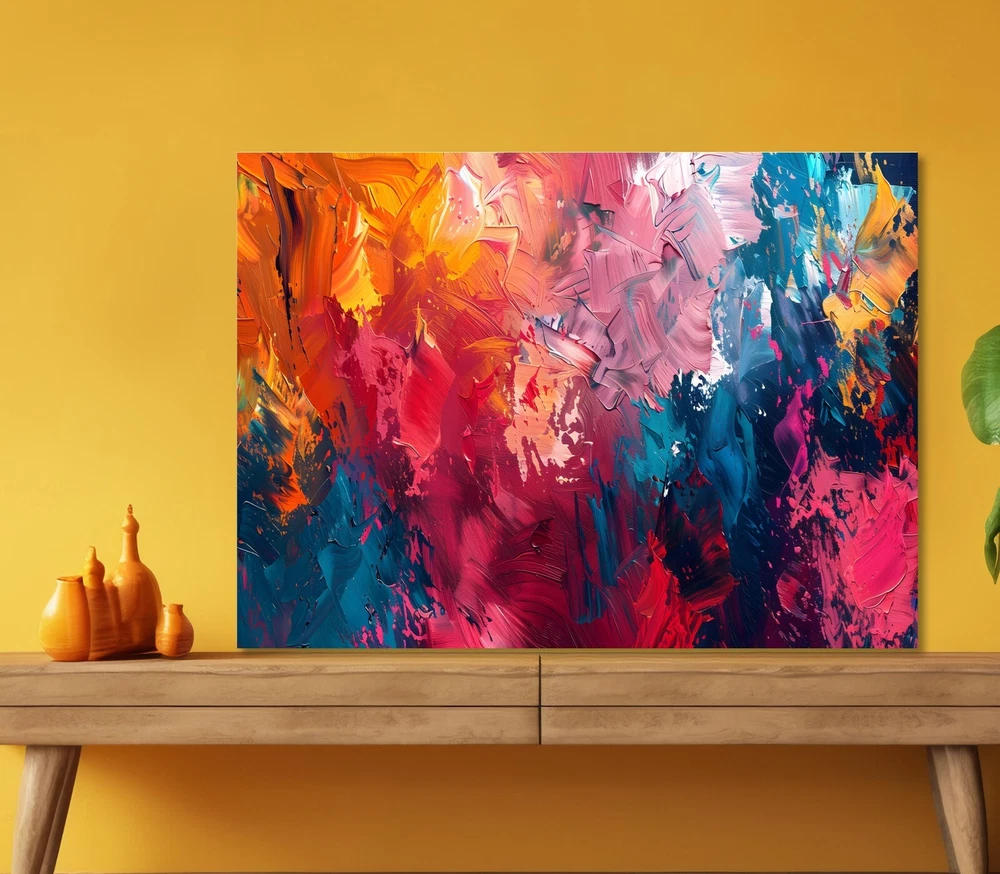 Colorful Abstract Oil Painting 5mm thick Plastic Poster Ready to Hang 60x45cm
