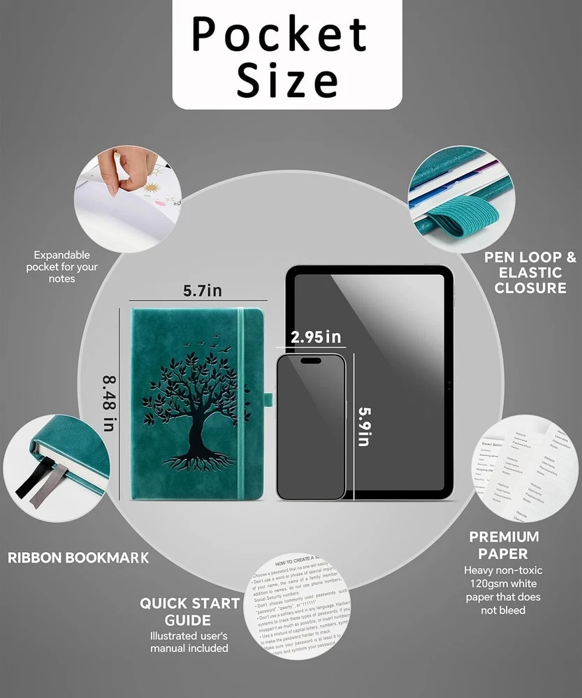 Password Book with Colorful Alphabetical Tabs, 8.4" X 5.8" Hardcover Password Ke Never Forget a Password Again: Tired of forgetting your passwords? Say goodbye to the frustration of constantly juggling and resetting passwords. Our Password Book with Colorful Alphabetical Tabs helps you easily store and keep all your passwords in one secure place, saving you from the hassle of managing multiple passwords, with no visible labels or titles, protecting your sensitive information. Find Your Passwords Quickly & Easily: Need to find a password in seconds? This password keeper with alphabetical tabs makes it simple. With vibrant colors and clear A-Z prints, you can quickly locate what you need, making it a breeze to access your accounts.