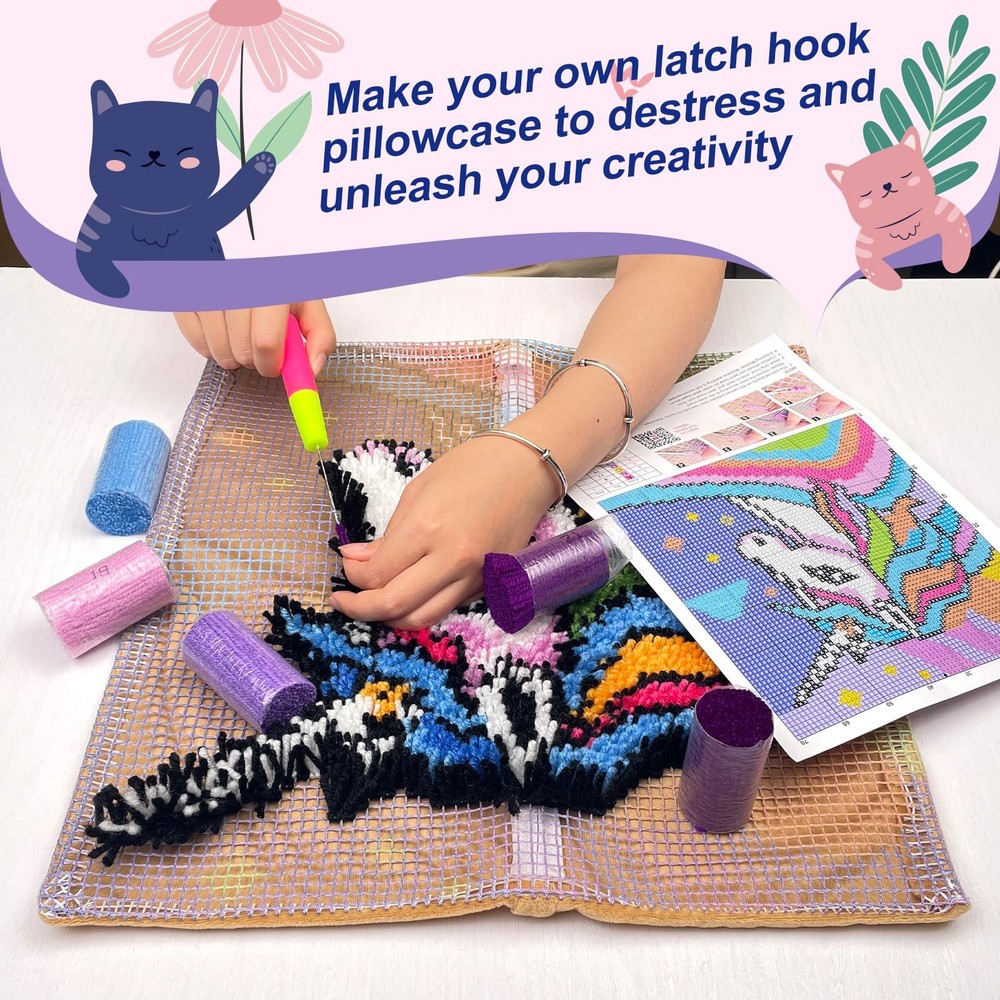 Colorful Cat Latch Hook Kits for Adults Kids Beginners Cute Animals Latch Hoo... ✨【Latch Hook Kit for Beginners】This Cute Colorful Cat latch hook pillow kit is designed for crafters of all skill levels. Featuring a clear instruction and tutorial video on how to latch hooking, our adult latch hook starter kit ensures that even beginners will have a satisfying and fun crafting experience, culminating in a stunning product that you'll be proud to display or give away. 🌈【All-in-One Kit】Each cute animals latch hook pillow kit includes a pre-printed mesh canvas, vibrant pre-cut yarn, Wooden Handle latch hook tool, user manual and a portable package. 🎄【Memorable Christmas Gift】Give a holiday gift that creates memories. The time and effort spent on crafting a latch and hook pillow cover make it a meaningful present that’s cherished long after it’s made. 🌟【Relaxing and Practical】Escape work stress with the calming craft of latch hook pillowcase making—a delightful and soothing pastime for adults. Once completed, your latch pillow transforms into a versatile Christmas decor piece. Use it as a cozy cushion and a unique throw pillow. It adds a personalized, handcrafted touch to any space, making your home uniquely yours. 😊【Satisfaction Assured】Our latch hook kit is crafted to bring joy and satisfaction! We're confident you’ll appreciate the quality and the delightful experience it offers. If for any reason you’re not fully satisfied, just reach out to us for a replacement. Your satisfaction is our highest priority. Introducing Cute Colorful Cat Latch Hook Pillow Kit - a perfect addition to your home decor or a meaningful handmade gift! Whether you're an experienced latch hook crafter or a beginner eager to explore latch hook, our latch kit offers endless creative possibilities. Our adult latch hook pillow kits contain everything you need to complete your 17x17 inch cushion cover: *1 Colorful Pre-printed Canvas *1 Set of Instructions and Color Chart *1 Wooden Handle Latch Hook Tool Sufficient Pre-cut Yarn *2 Portable Package Product Features: *Made from premium materials *Handmade meaningful gift *Stress relief and creative outlet *Enhances manual dexterity and focus *The perfect decoration for your home once complete Note: This product is a semi-finished product; you must make it yourself. This set does not include the pillow insert. Cleaning Method: machine washing is not recommended Dimensions are determined manually, so may vary slightly. Shipping We offer FREE shipping on all orders! We ship within Three business days of payment, usually sooner. We use a selection of shipping services such as UPS, FedEx, USPS etc. We only ship to the lower 48 states, no APO/FPO addresses or PO Boxes allowed. Local pickups and combined shipping options are not provided at this time. Return You can return a product for up to 30 days from the date you purchased it. Any product you return must be in the same condition you received it and in the original packaging. Please keep the receipt. Payment We accept payment by any of the following methods: PayPal Please pay as soon as possible after winning an auction, as that will allow us to post your item to you sooner! Feedback Customer satisfaction is very important to us. If you have any problem with your order, please contact us and we will do our best to make you satisfied. Contact Us If you have any queries, please contact us via ebay. We usually respond within 24 hours on weekdays. Please visit our eBay store to check out other items for sale! Thank you for shopping at our store.