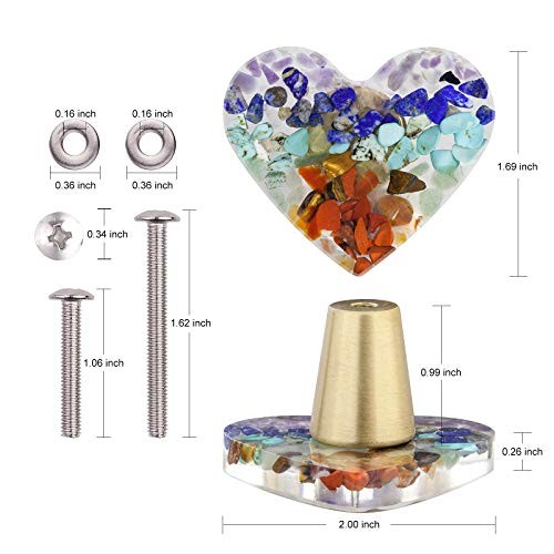 Menu 1. We require immediate payment. 2. We currently accept payment via eBay managed payments only. 3. Once payment is cleared, we will dispatch your shipment within 1-3 business days. Please refer to the "Shipping" tab for more information regarding shipping speed to your destination. Crystal Resin Brass Cabinet Decorative Knobs Colorful Locker Drawer Pull Handles Pack of 4 Product description Natural Crystal Chips Resin Heart: Length 1.69" (43mm); Width 2" (51mm); Thickness 0.27" (7mm). Brass Handle: 0.98", Min Width: 0.51", Max Width: 0.78"; 2 Different Size Screw: 1x 1.61", 1x 1.06". High-quality orgone crystal chips can clear negative energies and improve your house peace aura. Colorful crystal chip resin knobs bring fashion to your drawer, locker, nightstand, closet, cabinet. Comes with 2x stainless steel screws per knobs, 1x gift box. Easy to install and ready for a gift. PLEASE MESSAGE US IF YOU HAVE ANY OTHER QUESTIONS, AND MANY THANKS FOR READING ALL OF THIS. Copyright ©#. All Rights Reserved.