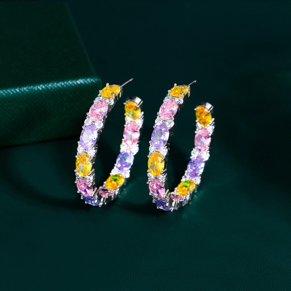 Cubic Zirconia Colorful Oval Tennis Round Circle Hoop Earrings for Women Party Specifications: Condition: New Material: Cubic Zirconia Color : Multicolor Size: 3.6 cm/ 1.4 inch Metal Color : Silver Plated Features: 1. CZ Stone Material - Top Level Cubic Zirconia. Excellent Cut Simulated Diamond. Enjoy the dazzling sparkle from cubic zirconia Hoop earrings. 2. These Fashion Large Hoop Earrings are Suitable for Almost all of Sensitive Ears. These are the top Cubic Zircon Round Earrings for Daily Wear. 3. Suitable for Various Occasions: Ideal for Wedding, Prom, Pageant, Parties, Homecoming, Black Tie Formal Affairs, Holidays , Birthday , Christmas , Valentine's Day , Anniversary and Special Occasions. 4. A Perfect Jewelry Gift for Women , Girls , Mother , Wife , Lover , Fiancee , Friends , Bride , Bridesmaid . Package Includes: 1 Pair of Hoop Earrings Payment Delivery details Terms of sales & Feedbacks About us & Contact us Our commitment Payment 1. We only ship item to your Ebay verified address . Please Make sure all address are the same 2.Please leave note in ebay when making the payment if you have any special request (colors/size). Delivery details We only send items to the registered eBay address.Items will be shipped within 2 business days from the date payment is received (not include public holiday and weekend) . As per eBay regulations, import duties, taxes, and customs charges are the buyer's responsibility. Please check with your country's customs office to determine what these additional costs may be prior to bidding or buying. Terms of sales & Feedbacks After-Sale Please contact us to request a return/replace/refund authorization .It will be best if you use ebay message to contact me. 1, Return and replacement request is available only the requests within 30 days after parcel received. 2, Returning the item as the same condition as received. Situation and solution Defectives ---Please contact us and provide a photo of the defective part. After situation confirmed,we will offer you refund/return/replacement according to the situation Not as Described ---Please contact us and provide a photo of the wrong part. After situation confirmed,we will offer you refund/return/replacement according to the situation Not Received ---Please undersatnding shipping on the way was out of our control ,because of the busy shipping season,holidays,bad weather or force majeure etc. It may be delay for days. But if it took too much time and not deliveried, Please message me, I will offer you solution for it. Feedbacks 1. If you are satisfied with our service, please leave us a + Good feedback and rate the details of the transaction (DSR) with a. . When you rate the shipping time part please take international transit into consideration.] Your recognition will make us more confident to develop business and serve you better. 2. Please contact us first if you have any problem with the items,we will solve it in time ! 3. Please do not leave Neutral or Negative Feedback before you contact us, Thanks For Your Business ! About us & Contact us Working time: Chinese time(Eastern eight zones):Monday to Friday ,9:00 am to 6:00 pm. We do not work on chinese legal holiday. Message reply: We will reply all messages within 24 hours of business time. Please contact us via ebay message, it was the best way for both you and us to solve problems. Any questions or anything you need, please feel free to contact us. Our commitment 1.Wholesale price will be offered to you if you need in bulk ! 2.About Size