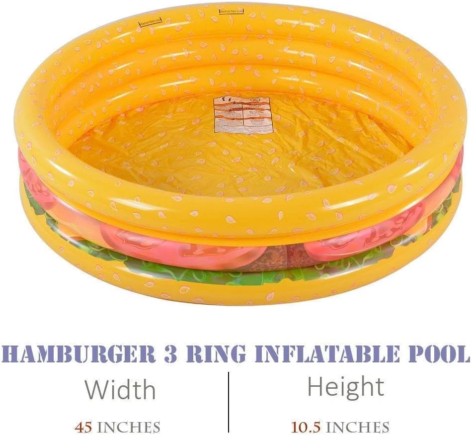 Inflatable Kiddie Pool with Ice Cream Donut and Hamburger 3 Ring Swim Float for Kids
