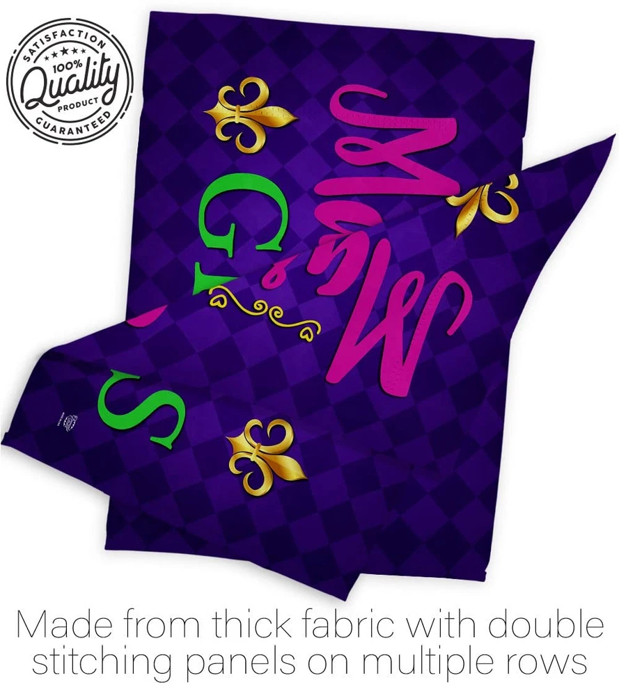 This Mardi Gras flag set is absolutely stunning! The vibrant colors and double-sided design make it pop both indoors and outdoors. The weather-resistant fabric and sturdy stitching ensure it lasts through all seasons. Perfect for adding festive flair to your mailbox, porch, or garden—easy to hang and looks fantastic. Great quality for the price, and it stays vibrant even after weeks outside. Love how it instantly brightens up any space! Highly recommend for anyone wanting to celebrate in style.