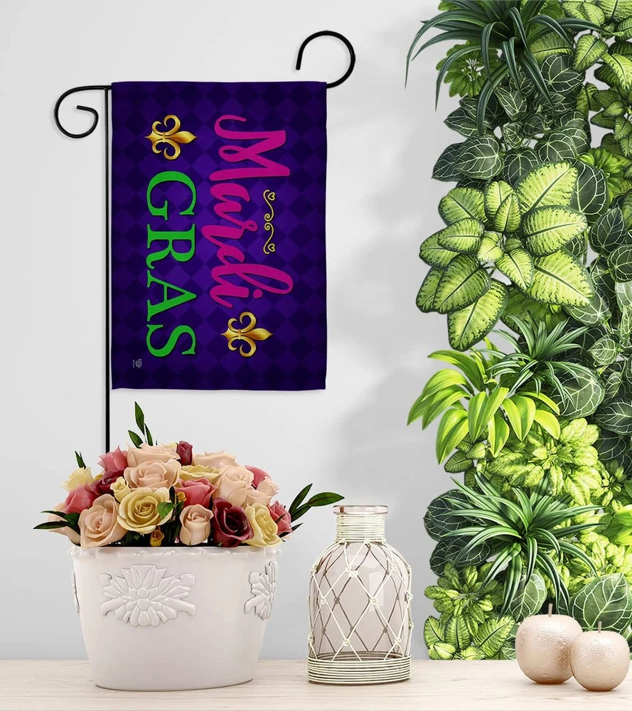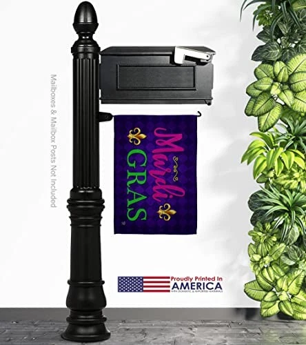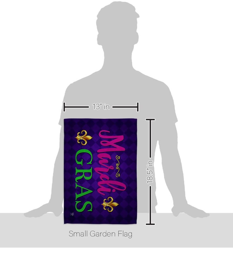 Mardi Gras Beautiful Mini Garden Decorative Flags Banner Pole - Complete Set with Wall Mailbox Hanger Power Coated Metal Flag Holder have variety of home decoration for all occasions. Uniquely design for hanging indoor or outdoor use. We are committed to offering you exceptional values. Our customers enjoy displaying our yard banner sign for longer periods. Specification: Theme: Mardi Gras Print: Double-Sided Readable: Readable Both Sides Material: Weather Resistant - Thick Fabric Stitching: Double Stitched Display: Horizontal Hang Type: Sleeve Artist: @ Olive Bell Origin: Made In USA Package Include: 1 pc x Mini Garden Flag 13" x 18.5" 1 pc x 1.5" x 15.5" Metal Yard Banner Hardware For more than a decade, we’ve been dedicated to manufacturing flags with no comparison in quality and beautiful designs. Our flags are made with our Guard material that is soft to the touch and designs can be read correctly on the flag. A feature that our customers will love. We are committed to using eco-friendly inks that won’t leave a foot print in our environment. MPN: OC-MG-IP-US22-OC PROUDLY Made In USA - Package And Product Designed In California PURCHASE WITH CONFIDENCE - From 's US Authorized Resellers DURABLE FLAG - Double stitching panels on multiple rows and high quality Sleeve to provide lasting strength VIBRANT COLORS - With UV-Resistant Maintains Its Colors All Season Long FEATURES - Sleeve Hanger fits standard Banner/Flagpole, Bracket, Arbors or stand Hardware Included!