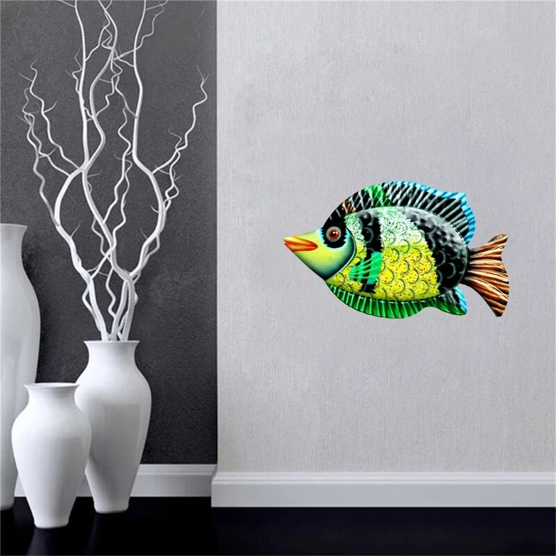 Features: brand new and high quality Made from high quality iron body structure, dealt with rust proof, durable, has long service life. The exquisite fish consist of lively eyes, mouth, beautiful back painted pattern and gorgeous fins. Suitable for outdoor or indoor decoration like patio, fence, porch, garden wall, door or window. Artistic wall art, this sculpture could as a good present for your fish loving friend or family. Add sea to your fence or indoors with metal fish decor. Specification: Material: Iron Size: app. 30x17.5cm(11.81x6.88in) Optional Color: Blue, Green, Pink, Yellow Quantity: pc Note: 1cm=10mm=0.39inch No retail package. Please allow 1-3cm error due to manual measurement. pls make sure you do not mind before you bid. Due to the difference between different monitors, the picture may not reflect the actual color of the item. Thank you! Package includes: x Wall Art Decoration(other accessories in the picture is not included.)