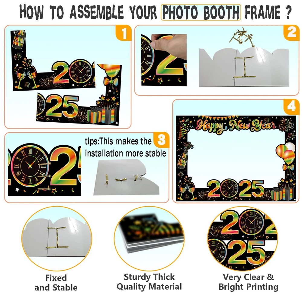 Colorful New Years Eve Decorations 2025, Giant Happy New Year Selfie Frame, 18pcs New Year Photo Booth Props, Happy New Year Decorations 2025, Funny New Year Eve Party Supplies 2025 New Year Eve Party Supplies 2025 : New year 2025 photo booth props set Includes 1set Giant Happy New Year Selfie Frame colorful, 18pcs New Year Photo Booth Props colorful, NYE Photo Booth Props 2025 full of New Year's Eve elements are enough for you to celebrate with your family and friends on New Year's Eve party! Happy New Year Photo Props 2025 Colorful :18pcs new year photo props accessories for your face or head, including 2025 glasses, moustache, red lips, hats, 2025 clock, happy new year sign, bow tie etc. Happy New Year 2025 Selfie Frame is very suitable for taking photos in the New Year and capturing beautiful moments. Easy to use:Giant Happy New Year Selfie Frame measure 50x70cm/19.6 x 27.5inch, For more convenient and safe transportation, we have divided it into four parts. You need to use accessories to fix them together, and in a few minutes, you can easily use them High quality material:The New Year photo booth props are made of sturdy thick paper, excellent quality, robust and durable. Widely Application: New years eve decorations are unique and interesting design with some cute pattern.You can make many fun ways to use these cute photo booth props! 2025 New years photo props are perfect for New years party, friends party and family gathering, etc. Shipping We offer FREE shipping on all orders! We ship within Three business days of payment, usually sooner. We use a selection of shipping services such as UPS, FedEx, USPS etc. We only ship to the lower 48 states, no APO/FPO addresses or PO Boxes allowed. Local pickups and combined shipping options are not provided at this time. Return You can return a product for up to 30 days from the date you purchased it. Any product you return must be in the same condition you received it and in the original packaging. Please keep the receipt. Payment We accept payment by any of the following methods: PayPal Please pay as soon as possible after winning an auction, as that will allow us to post your item to you sooner! Feedback Customer satisfaction is very important to us. If you have any problem with your order, please contact us and we will do our best to make you satisfied. Contact Us If you have any queries, please contact us via ebay. We usually respond within 24 hours on weekdays. Please visit our eBay store to check out other items for sale! Thank you for shopping at our store.