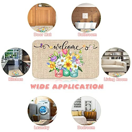 Return Policy Fast Delivery Trusted seller Spring Welcome Mats Hello Spring Floral Door Mat Colorful Tulip Flower Door Mat Indoor Entrance Cute Decorative Outdoor Doormats Non Slip Outside Door Mat for Front Door Spring Rugs, 16" x 28" Product Description Floral Pattern: the spring floral doormat is designed with colorful flowers, which is a typical element of spring; Welcome guests to your home with this indoor welcome mat, the spring theme allows you to celebrate spring in your own way, and adds charm to your home Quality Material: the outdoor mat is made of quality polyester material, which is soft and absorbent; The bottom of the mat adds non slip rubber pellets to avoid sliding or moving around, and the reinforced edges help avoid wear and tear on the mat, which can serve you for a long time Fitting Size: the door mat indoor entrance measures approx. 16 x 28 inches/ 40 x 70 cm, 6 mm thick, proper thickness helps avoid tripping and does not easily block the room door, suitable for most indoor or outdoor areas Applicable Occasions: outdoor front door mat is suitable for most decks, patios, porches or balconies, and creates a charming decorative style for your backyard, lawn or garden, you can put this mat in your kitchen, bedroom, bathroom, floor and any indoor and outdoor occasions Tips: After receiving the doormats , if it cannot be laid flat, please try to roll it in the opposite direction or iron it with an iron, then you will get a beautiful and practical doormat Shipping Returns Payment Shipping Shipping is FREE to all addresses other than APO/PO boxes in the lower 48 states. All our stock ships from US-based warehouses. Shipped via USPS or UPS (depending on location and package weight) Unless stated otherwise, all orders will ship within 24-72 hours of your payment being processed. Check our feedback to see the great reviews of FAST shipping we offer. Returns Seller does not accept returns Payment We currently accept payment via eBay managed payments only. Once payment is cleared, we will dispatch your shipment within 1-3 business days. Please refer to the "Shipping" tab for more information regarding shipping speed to your destination.